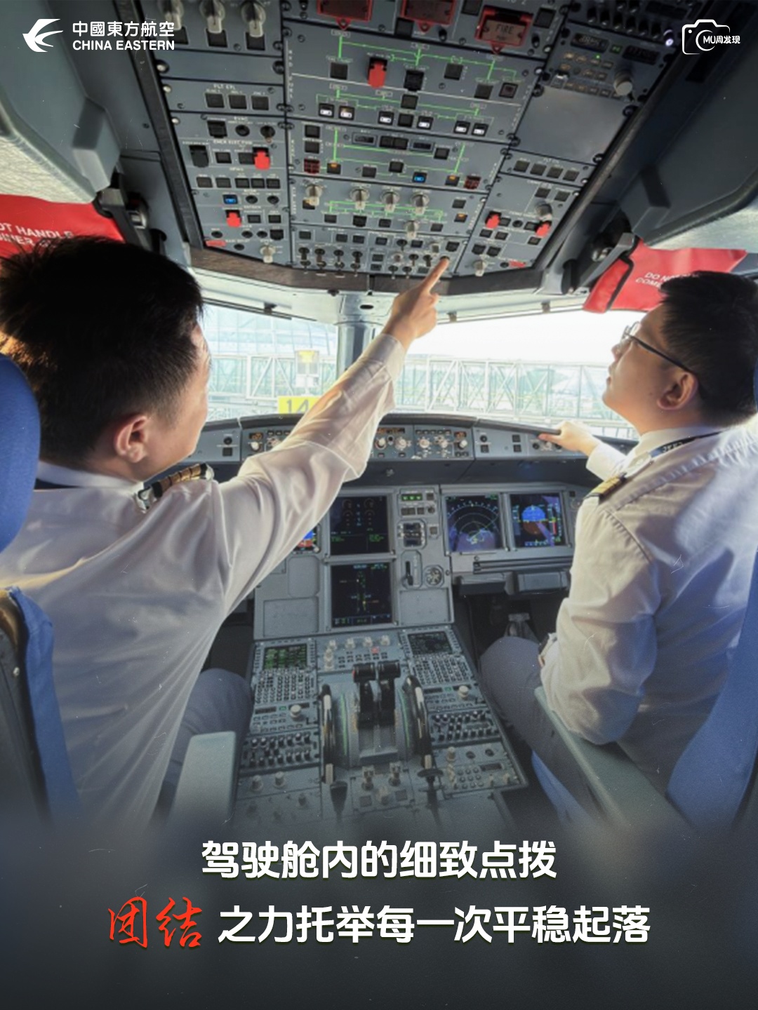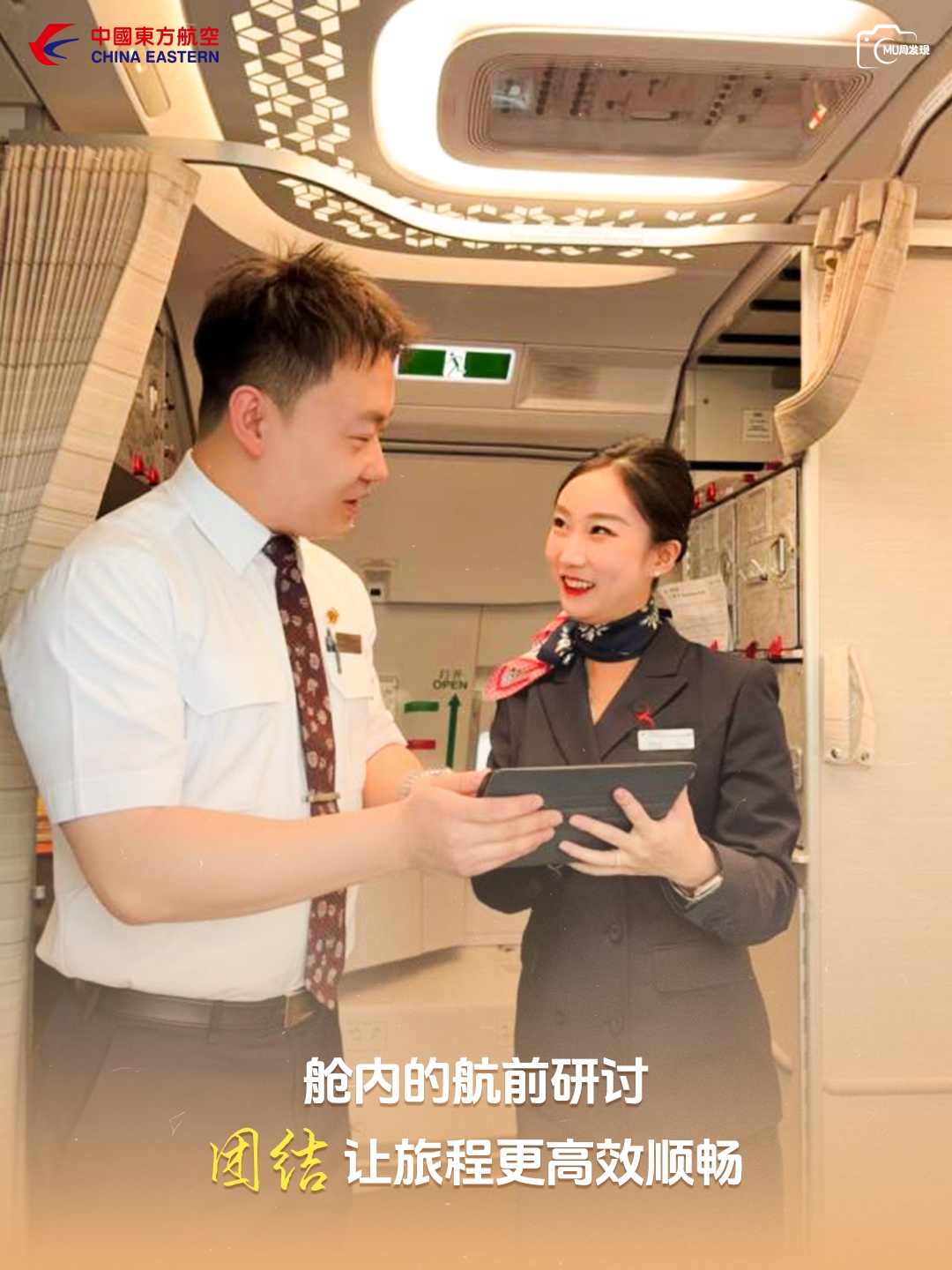 【驾驶舱外廊,他们共对平板核对航班特殊保障需求,从旅客的特殊餐食偏好到机上设备的备用状态,两人指尖同点的单据上,写满了协作的细致。团结,是大家为了同一段平安航程的双向奔赴。—— 西北分公司 易家辉】