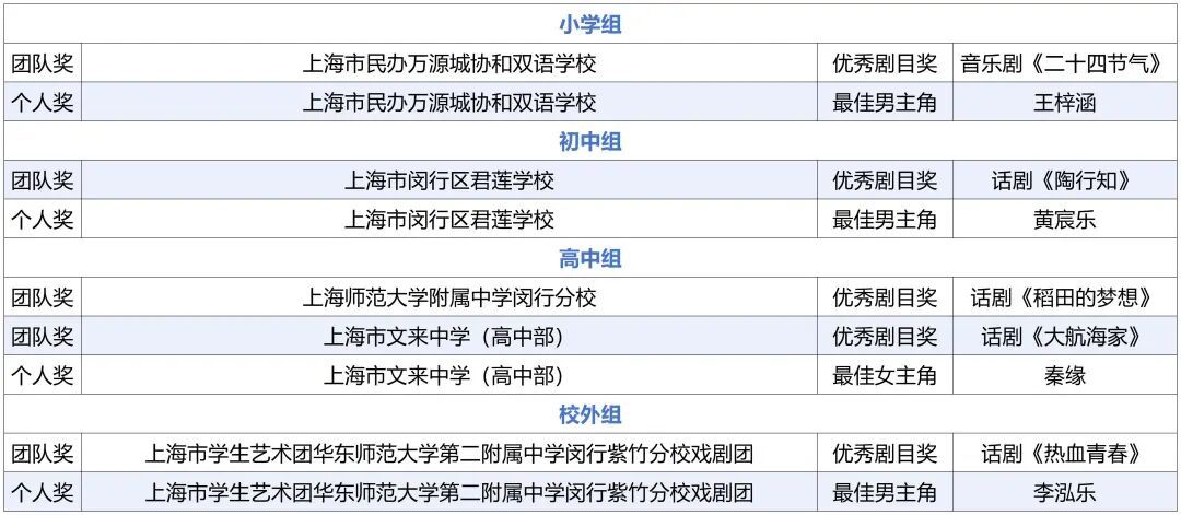 第四届上海校园戏剧节获奖名单