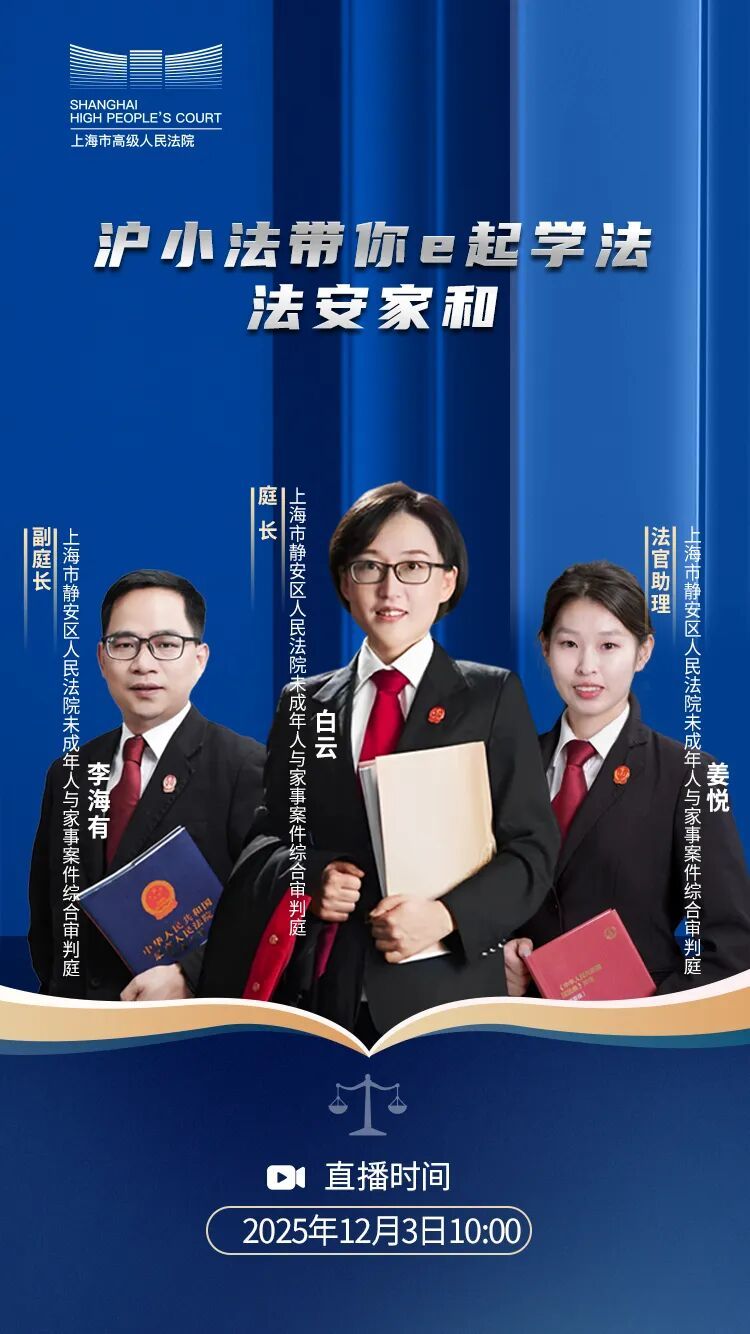 12月3日,宪法宣传日来临之际,上海市高级人民法院主办、上海市静安区人民法院承办的“沪小法带你e起学法·法安家和”公众开放日普法直播,将为你一一揭晓答案。
