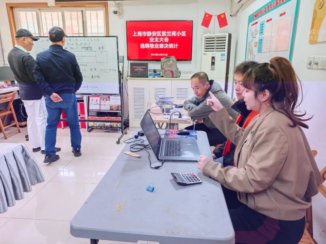 10月24日,物业选聘表决统计工作在华丰居委会举行,街道相关科室、城运中心代表、社区民警现场监督,业主代表全程见证。统计工作严格遵循“票数达标+面积达标”双重标准,工作人员分两组细致核算每一张选票、每一户面积,确保数据精准无误。最终,目岩物业以高票当选。
