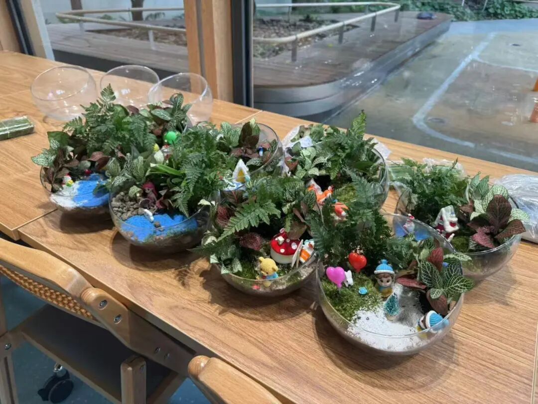 居民们凭借手中的玻璃容器、小型绿植、彩砂、小栅栏等材料,纷纷化身“迷你园林设计师”,在方寸之间构思布局。翠绿的网纹草错落有致地排列着,柔软的苔藓如同绿色的绒毯,彩色砂石巧妙地勾勒出蜿蜒的小径,再搭配上可爱的小摆件,一个个独具特色、生机盎然的微缩景观逐渐成型。居民们纷纷表示,此次活动让他们更直观地理解了生态保护的重要性。