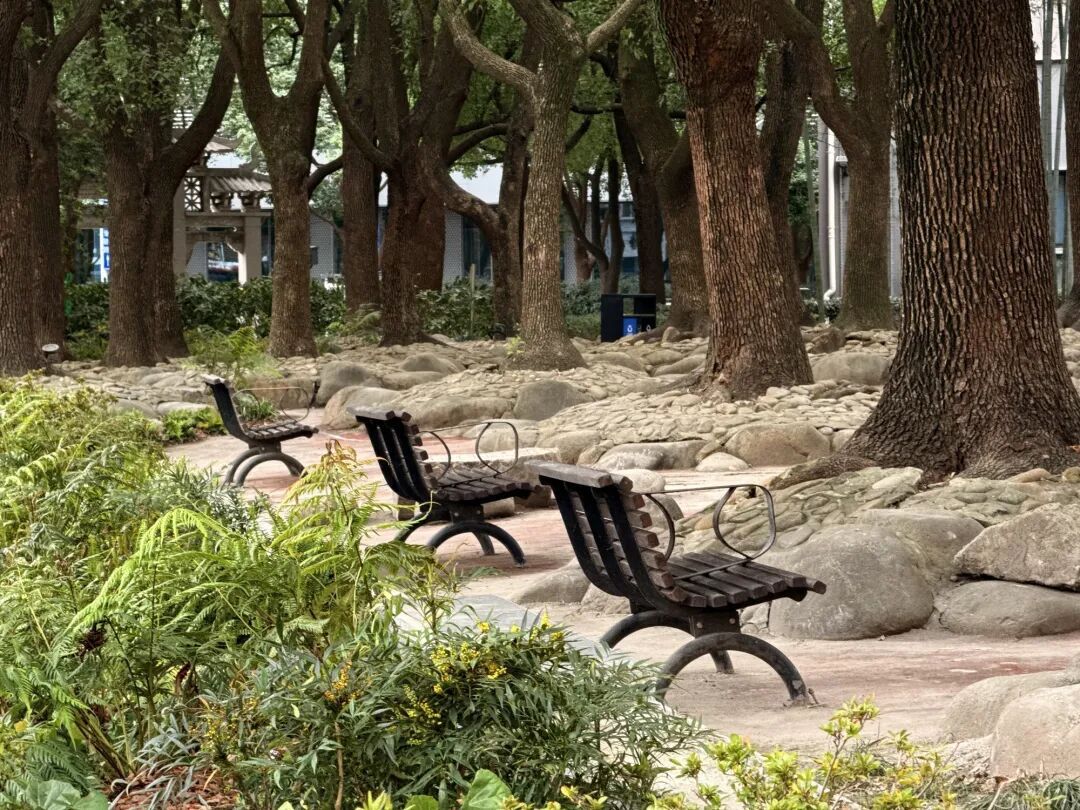园区新增29根一体化合杆与3根12米高的高杆灯,确保夜间也灯光充足,加上景观透光度强,福佑路、人民路灯光也能辐射到园内,避免了因灯光过暗可能存在的安全隐患。此外,若遇到紧急情况,市民游客也可以在园内的路灯、座椅等位置上都找到编号和紧急求助电话,保障游客的安全。