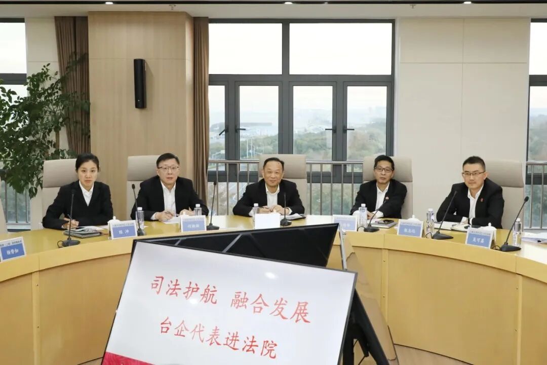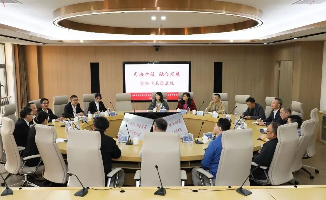 近日,上海市闵行区人民法院联合闵行区台办,共同举办“司法护航·融合发展——台企代表进法院”活动,来自闵行的台资企业代表们走进法庭,“零距离”感受司法透明、感知司法温度。闵行区台办主任孙鸿宾,闵行区人民法院党组成员、副院长徐玉弟,区台办副主任王麟及相关代表等参加活动。
