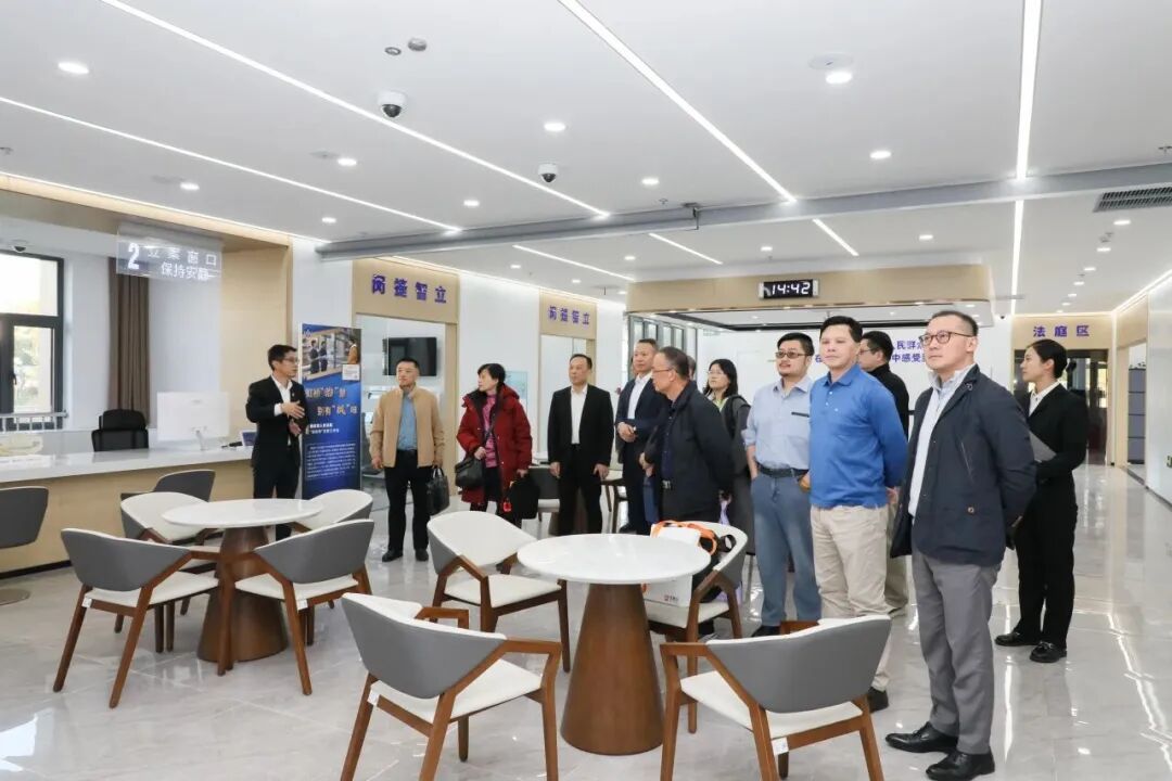 活动伊始,台企代表们步入法庭,跟随讲解,先后参观了诉讼服务中心、智慧调解室和融合法庭,详细了解了取号系统、诉服中心导览系统、庭审排期系统组成的智能化引导专区,直观感受司法服务的便利性。据介绍,闵行区法庭已积极融入全国法院“一张网”建设大局,全面贯通立案、调解、审判等各环节,推动诉讼服务“一网通办”、审判辅助“一网统管”、司法数据‘一网共享’”。