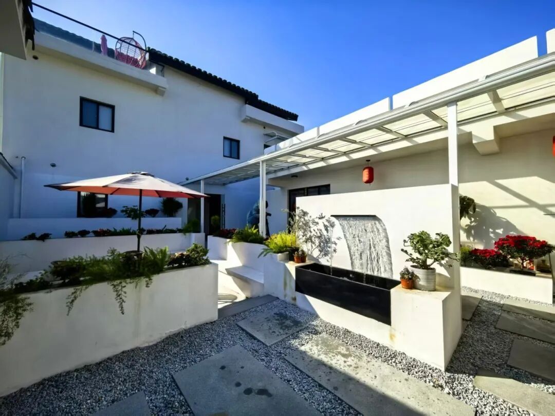 民宿虽不大,但五脏俱全。一层中庭区有花园,还有微型瀑布从假山上倾泻而下。二层的大露台,夜可观星辰,日可望田野。出了院子,仅一路之隔就是艺术感满满的大草坪。喜爱机车的陆青还在民宿旁打造了机车驿站。