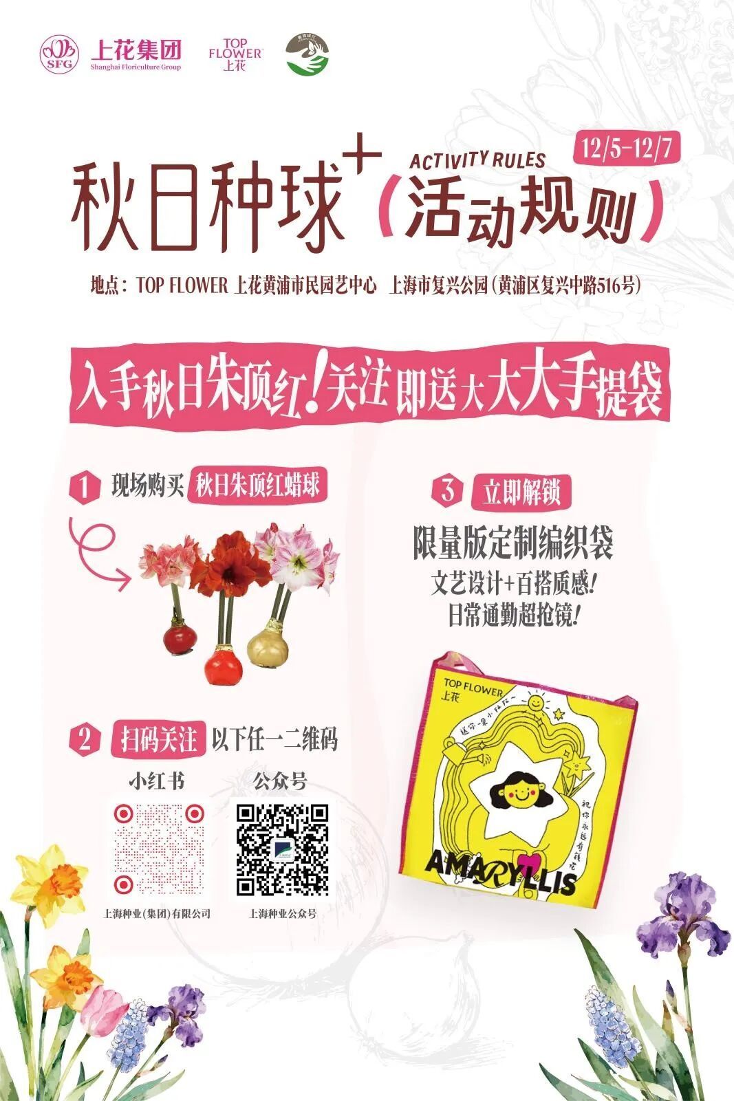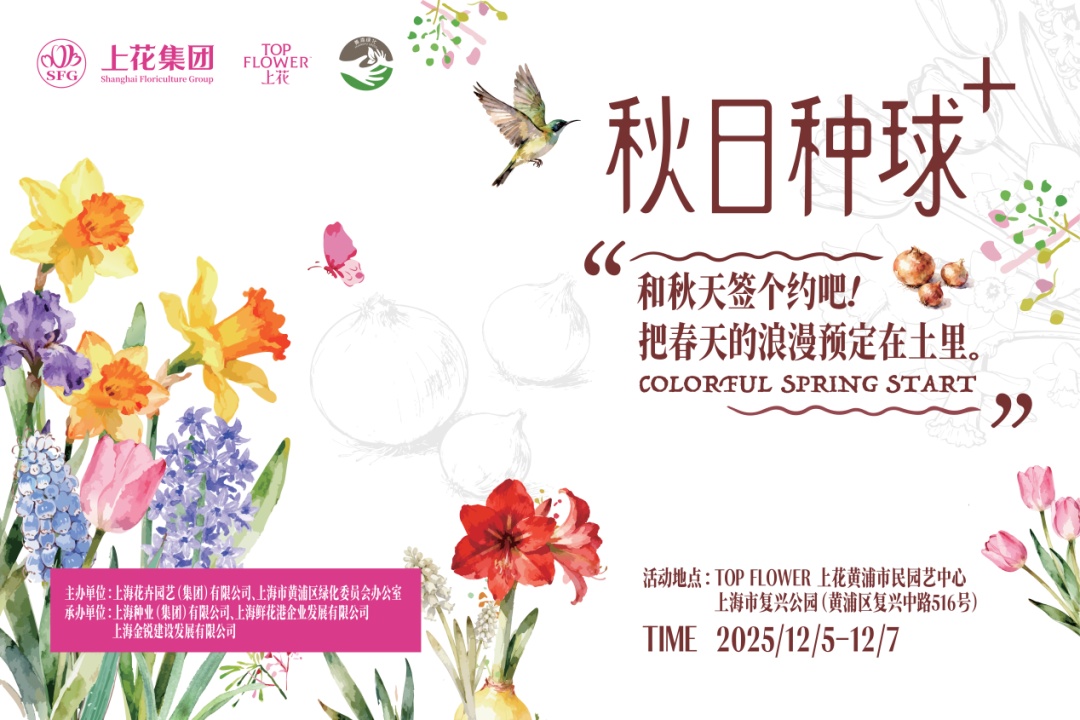 2025年12月5日-12月7日,“秋日种球+”——秋季进口球根花卉展将亮相复兴公园。届时,将有多组各式景点环绕复兴公园市民园艺中心周围,装点起复兴的晚秋。诚邀您在寒冬来临前,与我们一起“和秋天签个约”,将饱含春意的花卉种球“埋进丰沃的净土”,静待次年暖风唤醒满园芬芳。