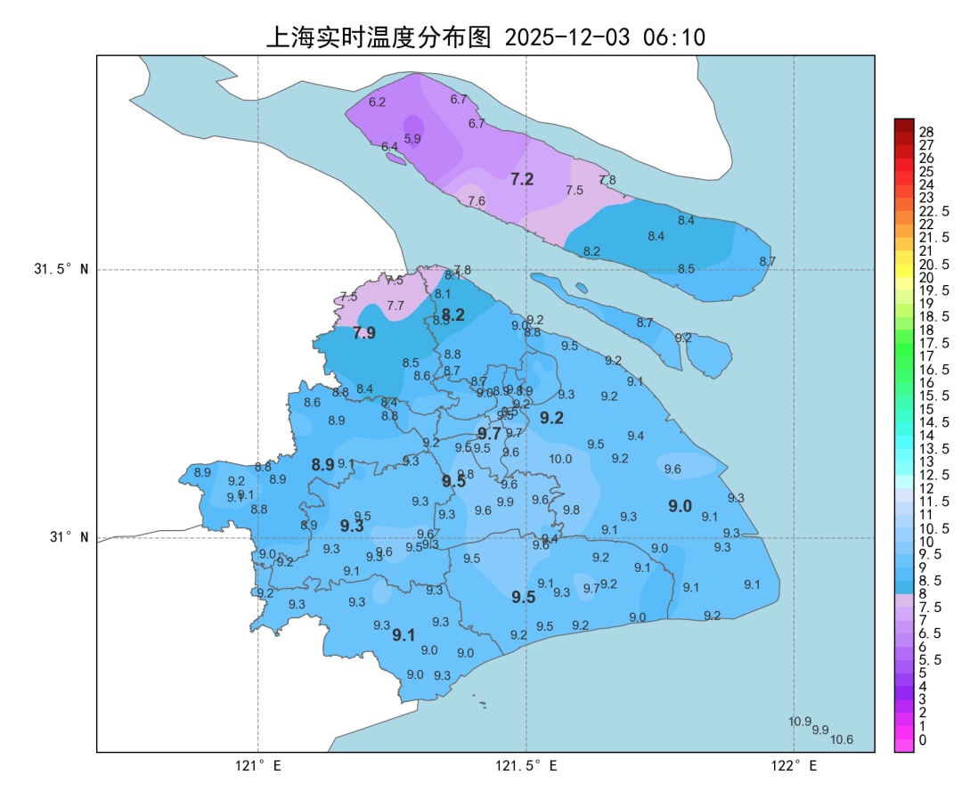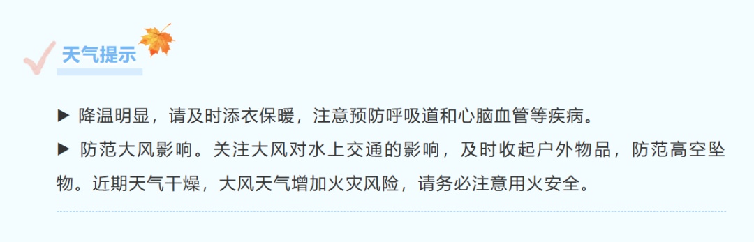 北方较强冷空气已经开始影响本市,降温开启,并伴有大风天气,目前本市寒潮蓝色预警信号生效中。今天多云开场,上午转晴到多云。早间出门已有寒意,06时全市气温大多在8~9℃附近,预计白天最高气温将跌至11℃左右。北到西北风4~-5级阵风6级,沿江沿海地区5~6级阵风7级,风寒效应明显,晚归时段体感更冷。今天相对湿度75%~25%,火险等级气象指数:4级,易燃。