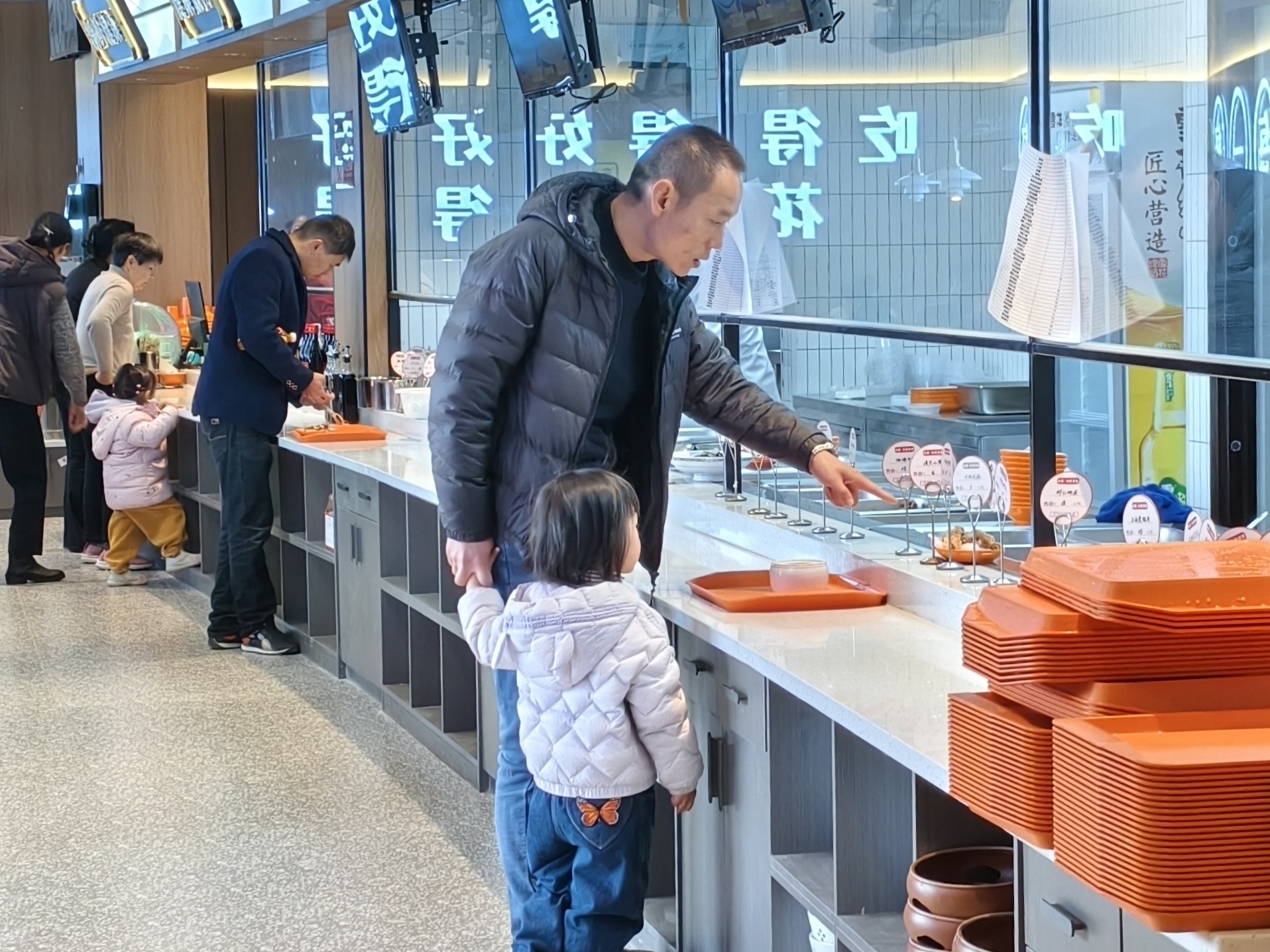 “现在,我和老伴每天的早、午餐都会在这里解决,偶尔还能到旁边的家宴厅打打牙祭。”谈起家门口的社区食堂,居民王老伯连连点头表示满意,他还记得今年4月食堂试运营时,自己特地起了个大早前来消费。“这是附近第一家社区食堂,一定要试试,如果服务过关,以后就会常去。”王老伯说。事实上,食堂的服务远远超出他的预期,不仅就餐区宽敞明亮,菜品丰富多样,定价也尤其亲民,像他一样持有本地老年卡的居民还能享受专属折扣。王老伯细算过,夫妻两人两顿都在食堂解决,一天开销不超过50元。