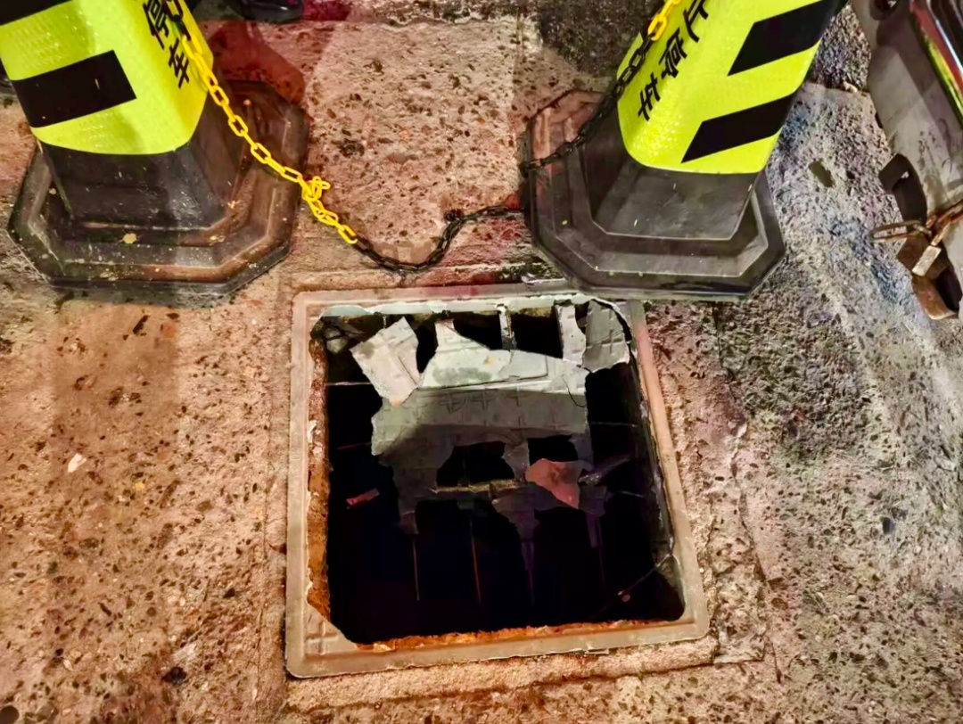 由于长途汽车站物业方不具备窨井盖维修能力,且夜间物业维修人员已下班,网格随即提请启动应急抢修预案。街道社区管理办协调市政部门应急抢修队伍赶赴现场,更换符合安全标准的新井盖。经现场分析,井盖损坏主要源于车站内部结构加固工程:运输重型材料的车辆频繁通行,长期碾压老旧井盖,致其不堪负荷而破损。