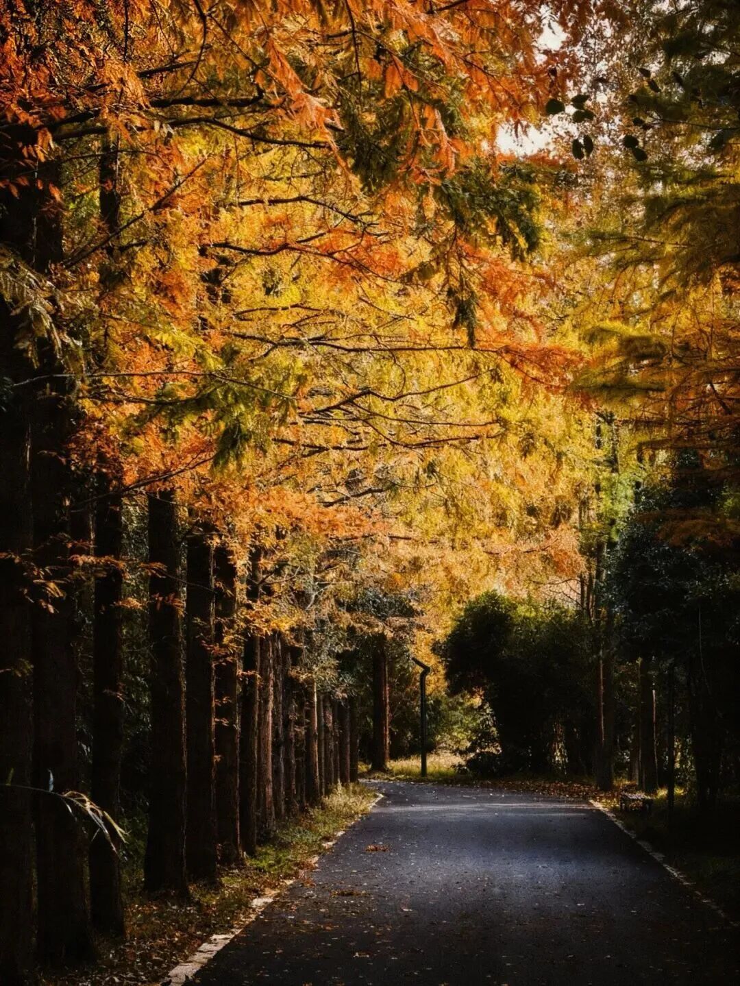 崇明的初冬,藏在东平国家森林公园的水杉林间。曾经满林的苍翠悄悄“上妆”,笔挺的水杉褪去旧色,枝叶从梢头开始渐染,层层叠叠晕出温柔的渐变。