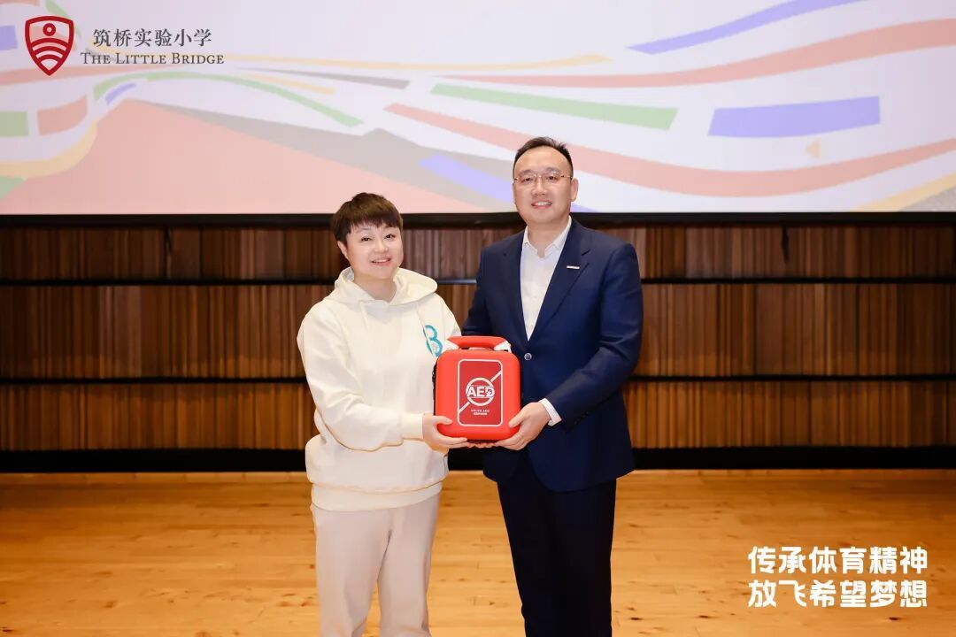 作为本次巡展的特别环节,巡展支持方沃尔沃汽车还为筑桥师生带来了一台“救命神器”——AED设备。沃尔沃汽车长期致力于AED的普及和社会急救体系的完善,此次,沃尔沃汽车向该校捐赠AED设备,是体育、健康、校园三方结合的全新模式。体现了沃尔沃汽车对校园体育安全和生命健康的深切关注,也展现了体育与健康、社会公益相结合的新模式。