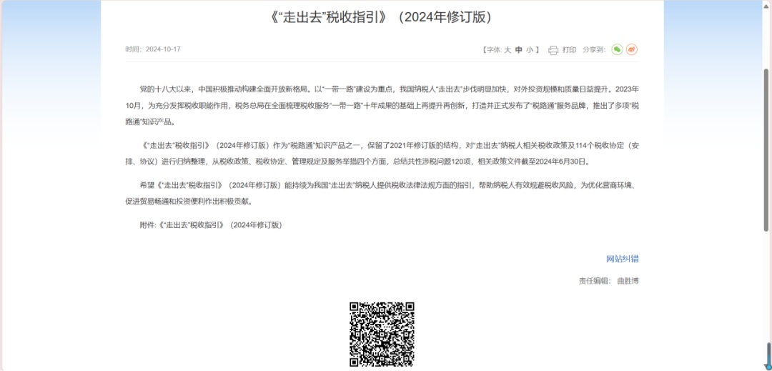(二)进入税收指引板块,点击《“走出去”税收指引》即可查看。