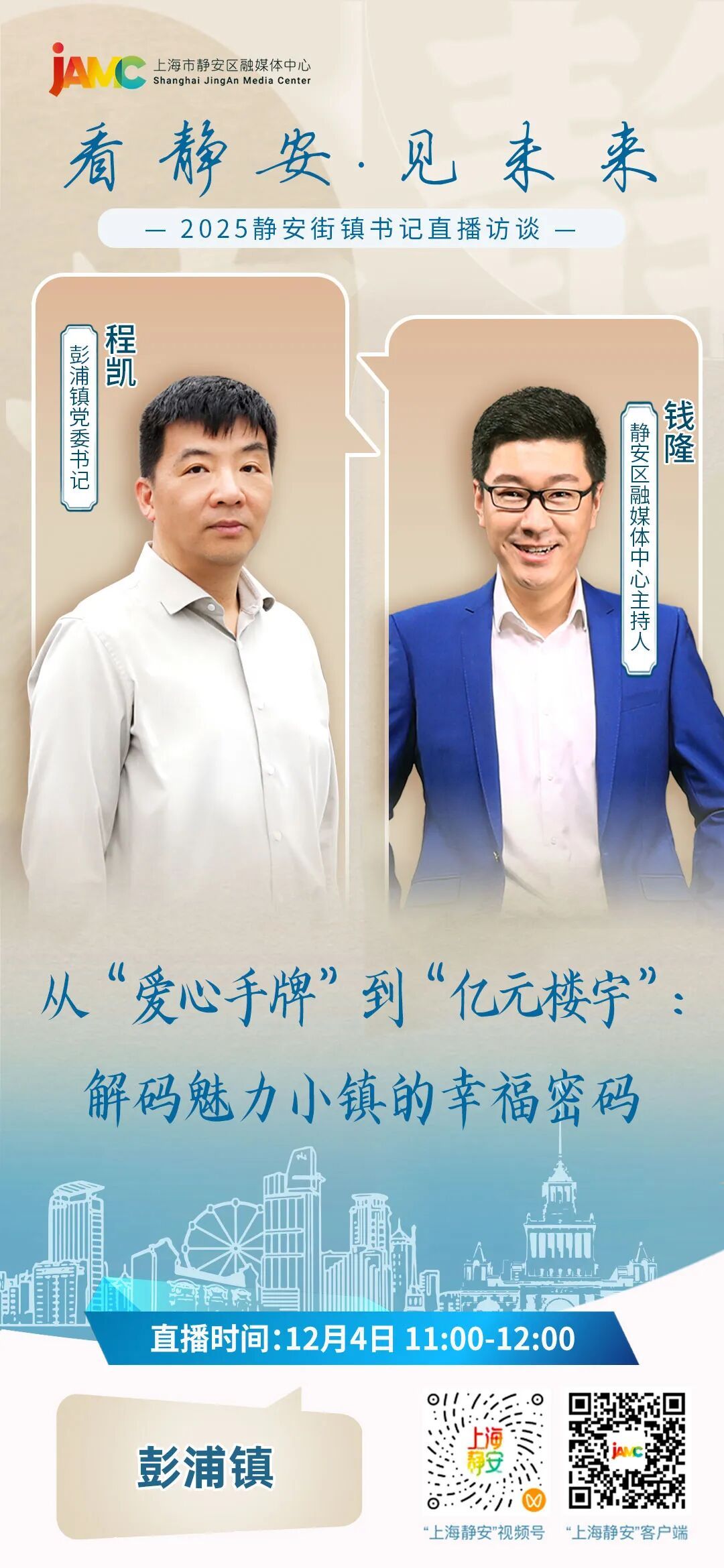 2025年是“十四五”收官、“十五五”谋划的关键年。静安区委宣传部、静安区融媒体中心推出“看静安·见未来”2025静安街镇书记直播访谈节目,以街镇视角带您探寻区域经济发展、民生改善等亮点,感受社区发展与民生温度。