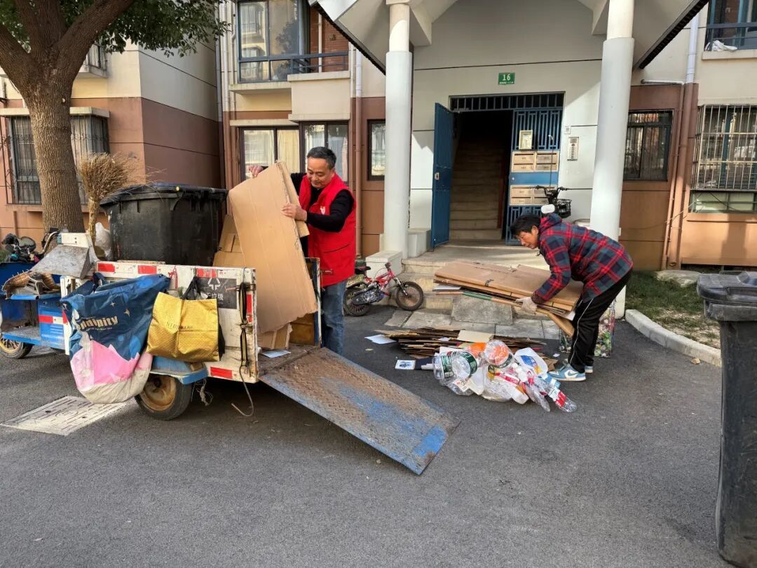 “以前劝导居民清理堆物,老人常说‘搬不动’,如今上门服务跟上了,治理难题自然迎刃而解。”社区党总支书记樊帅杰介绍,仅活动一上午,服务队就完成了6户特殊家庭的堆物清理工作。在活动现场,废旧物品被有序分类回收,居民凭闲置物兑换积分,再用积分换取洗衣液、洗洁精等实用物资,短短2小时便清理楼道堆积物数十件。这种“现场兑换+上门服务”的组合模式,让“楼道清爽”的文明目标覆盖到社区每一个角落,让文明治理既有“力度”更有“温度”。