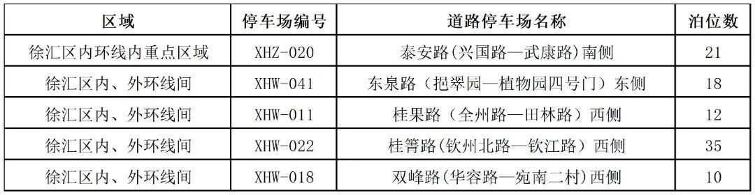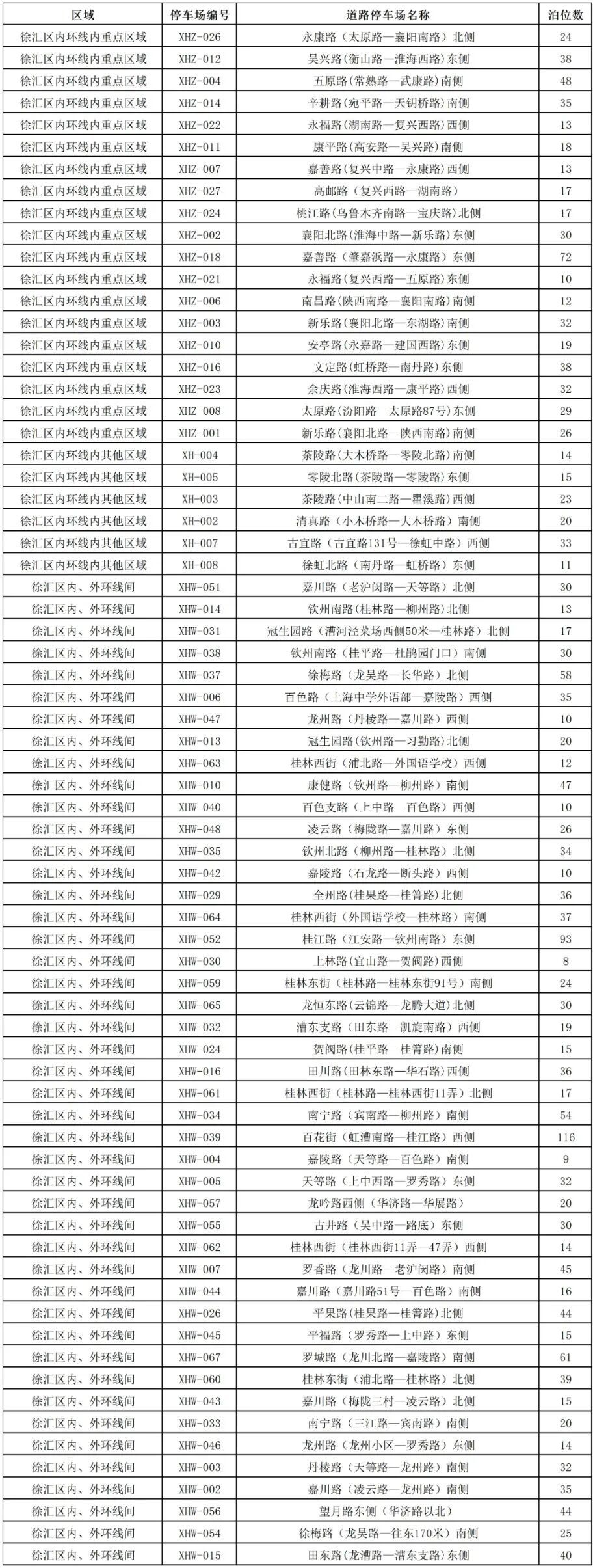 自2025年12月17日零时起,徐汇区在内环线内重点区域1处道路停车场,内、外环线间4处道路停车场正式实施智慧收费管理。 根据市、区公安交警部门核定,本次新增的5处智慧道路停车场具体设置信息如下表: