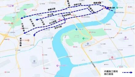 周一至周日夜间24时至次日晨6时内环高架(南浦大桥至龙华西路)内圈主线封闭,鲁班转盘往内环内圈匝道封闭。