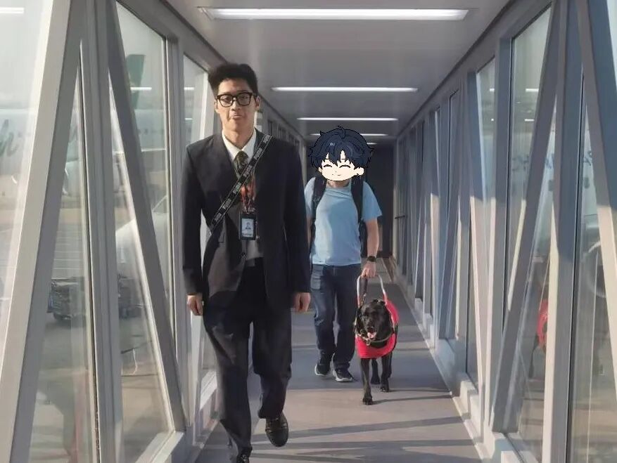 清晨的机场航站楼里,地服部接到了特殊的出行任务。一位旅客将在导盲犬Black 的帮助下乘机。为了让行程更顺畅,工作人员提前协调近机位,安排专人在舱门口等候。