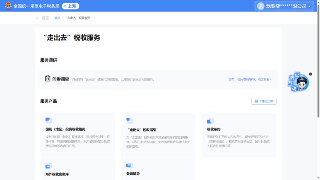 (二)进入功能后,点击【“走出去”税收指引】,即可查看。