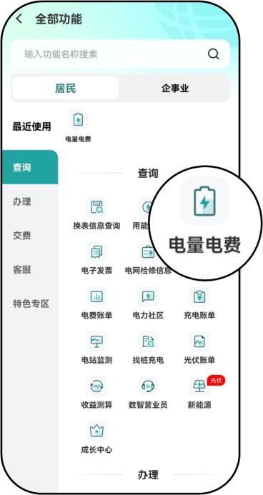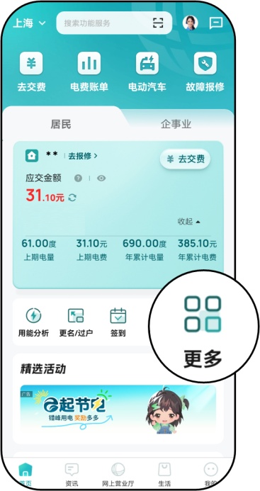 进入首页,点击“更多”可进入功能查询页面,查看家庭每日用电量及月度电费情况。