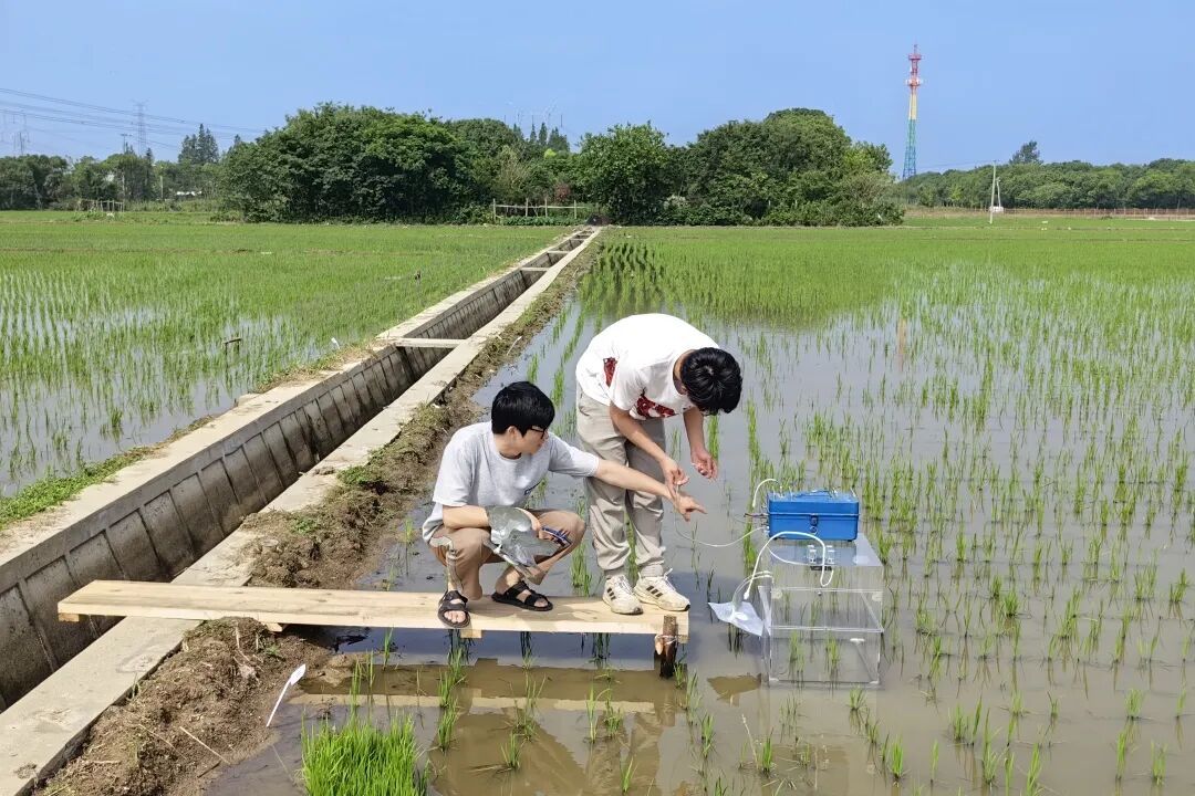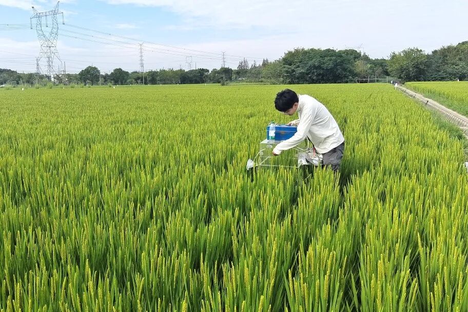 为确保“碳标签”试验的科学性与准确性,市农科院生态所低碳农业研究团队的张鲜鲜博士为谷杰合作社精心设计了对比种植方案。“我们在大治河以南区域布设了6套温室气体监测装置,采用静态箱—气相色谱法,对各50亩节水抗旱稻‘沪旱香软61’旱管种植与对照品种‘沪粳217’淹灌种植开展全生育周期碳排放对比测定,为后续低碳稻米标签认证提供数据支撑。”