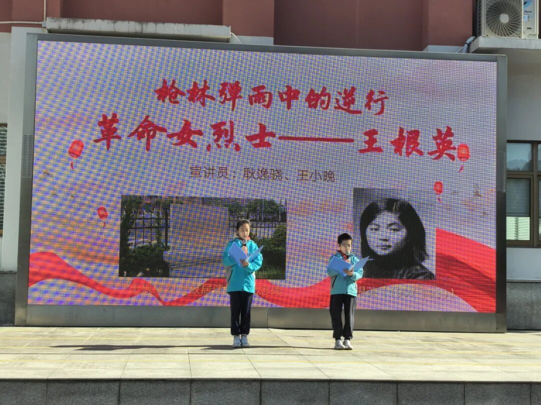 在随后的环节中,耿逸骁、王小晚同学深情讲述了革命先烈王根英的英雄事迹。“王根英烈士用生命诠释了对党的忠诚,她的精神永远照亮我们前行的道路。”稚嫩的童声真挚动人,带领在场听众重温峥嵘岁月,让红色精神叩击心灵、引发共鸣。