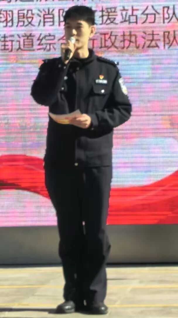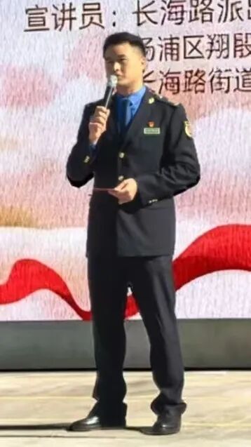 长海路街道综合行政执法队队员王立成则用朴实的语言,讲述了服务群众、建设美丽社区的点滴。“规范一辆共享单车的停放、清理一处楼道的杂物,这些看似是小事,实际上都是在为城市添光彩、为群众办实事。”他的分享让孩子们懂得,平凡岗位上的坚守,同样是一种了不起的贡献。
