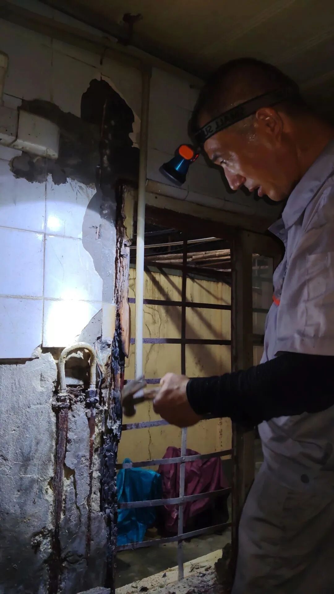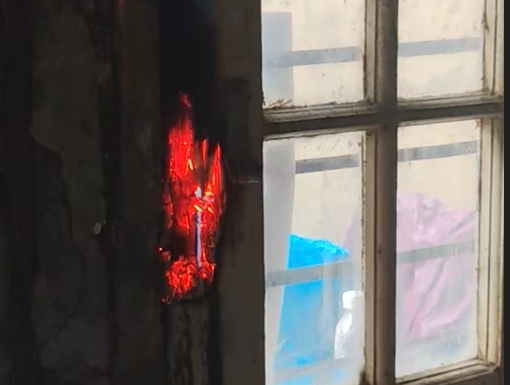 老人居住在老旧小区的二楼,徐伟与社工小杨穿过一楼公用厨房区域时,突然看到门边墙内闪过火花,泛着淡淡的红光。两人心头一紧,走近查看墙壁上的情况。原来,墙壁内的老旧电线碰在了一起,有细微的电火花持续闪现,并已引燃木质窗户蹿起了隐约的小火苗,还伴有淡淡的焦煳味。
