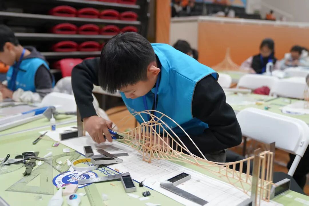从校内比拼到市区级选拔,再到全国赛场的巅峰对决,闵行学子历经层层考验,一路奋进。赛前,闵行区青少年活动中心建筑模型桥梁承重教研组核心成员北桥中学陈武平、虹桥小学蒋学宏、强恕学校沈遵贵、七宝实小樊丽雯四位老师,聚焦木桥梁结构设计及承重项目,积极开展教学交流与经验分享,不断创新设计思路,深入探索木桥结构工艺,引导学生融合力学与美学知识,有效提升了教学实效与学生综合素养。