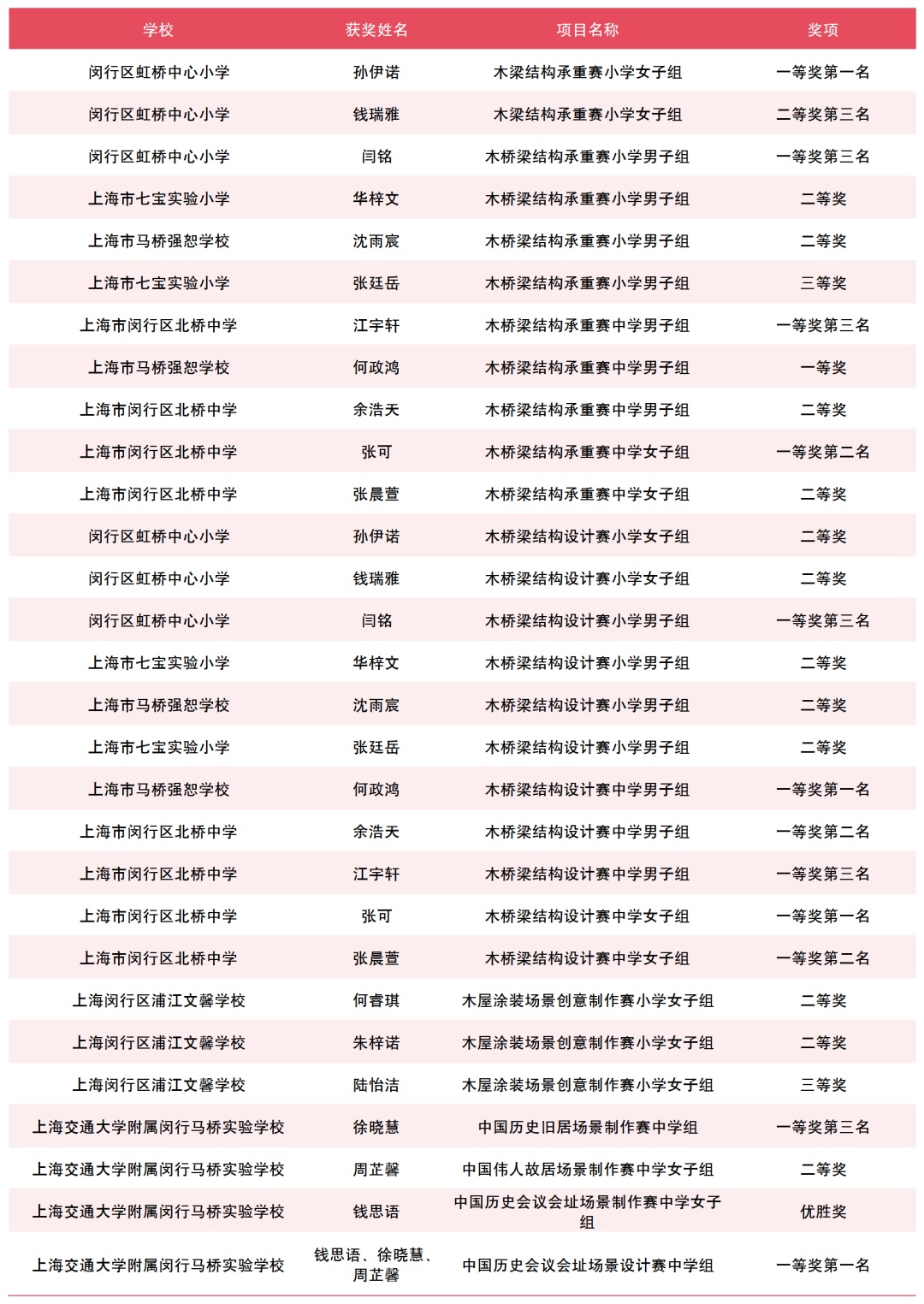 每一项荣誉的背后,都凝聚着参赛学子的日夜钻研与指导教师的悉心培育,生动诠释了闵行学子以建筑模型为载体、助力科技创新的青春担当,展现出新时代青少年奋勇争先的精神风貌。