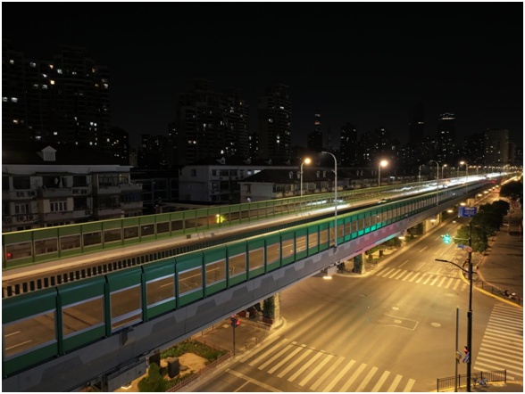 内环高架设施提升及功能完善工程(龙华西路-南浦大桥)实施段主线总长6.6公里,包含6条匝道,施工内容主要包括防撞墙原位拆除新建、桥面铺装重做、声屏障改造、伸缩缝更换、支座更换、排水设施更新、结构破损修补等;另外增设桥梁健康监测设备、绿化自动灌溉系统等。