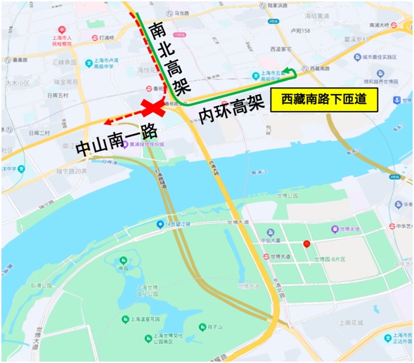 12月6日夜间24时至12月7日晨6时内环高架(瑞金南路至南浦大桥)主线双向封闭。