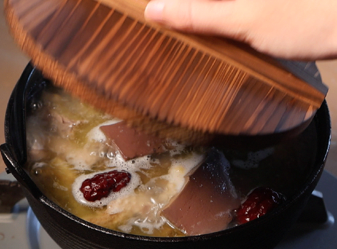 莲藕炖得粉粉的,汤水回甘,秋冬干燥时喝一碗正合适。