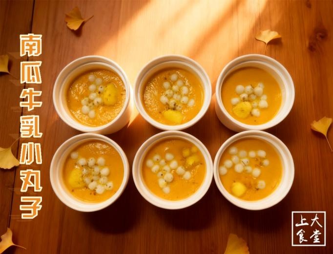 餐后来一碗甜汤,南瓜和牛乳很丝滑,小丸子糯叽叽,幸福感满满。