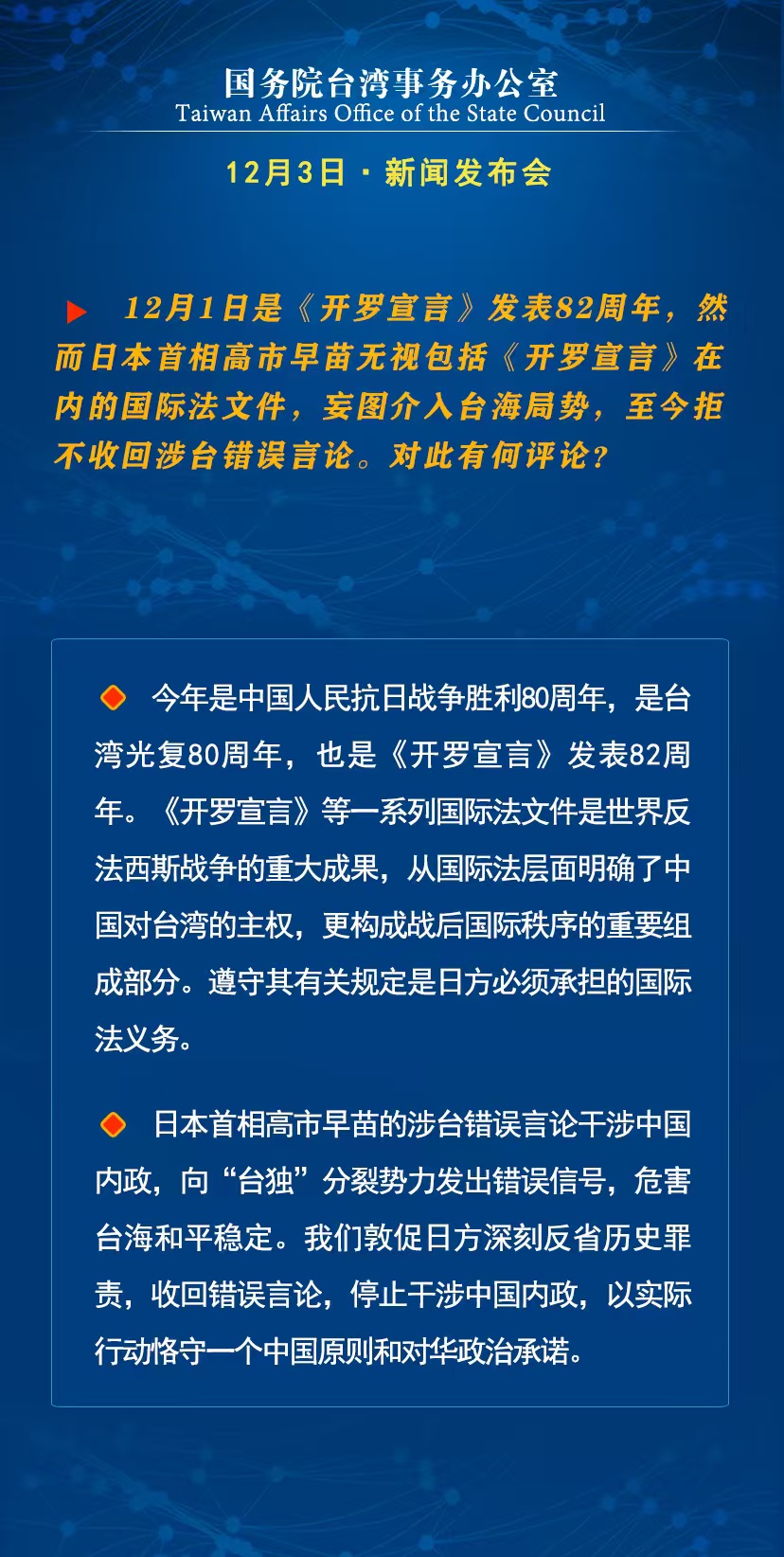 国台办:敦促日方深刻反省历史罪责,收回错误言论,停止干涉中国内政