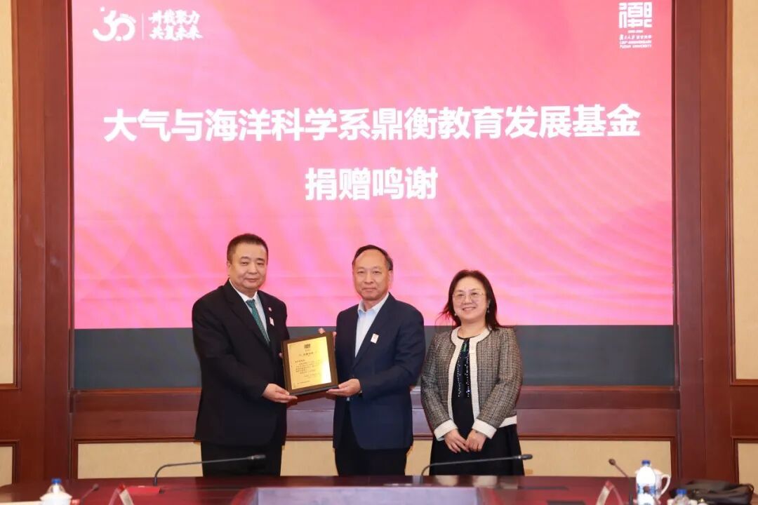 校董李多珠捐赠1亿元设立复旦大学大气与海洋科学系鼎衡教育发展基金,用于支持大气与海洋科学系加强深远海科技能力建设,探索有特色的向海图强道路,推动复旦地球科学发展,为建设海洋强国和应对气候变化等国家战略贡献力量。