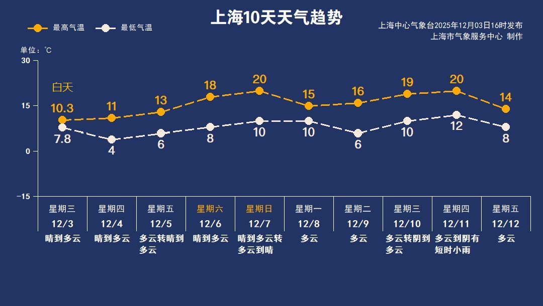 双休日最高气温可达18-20℃
