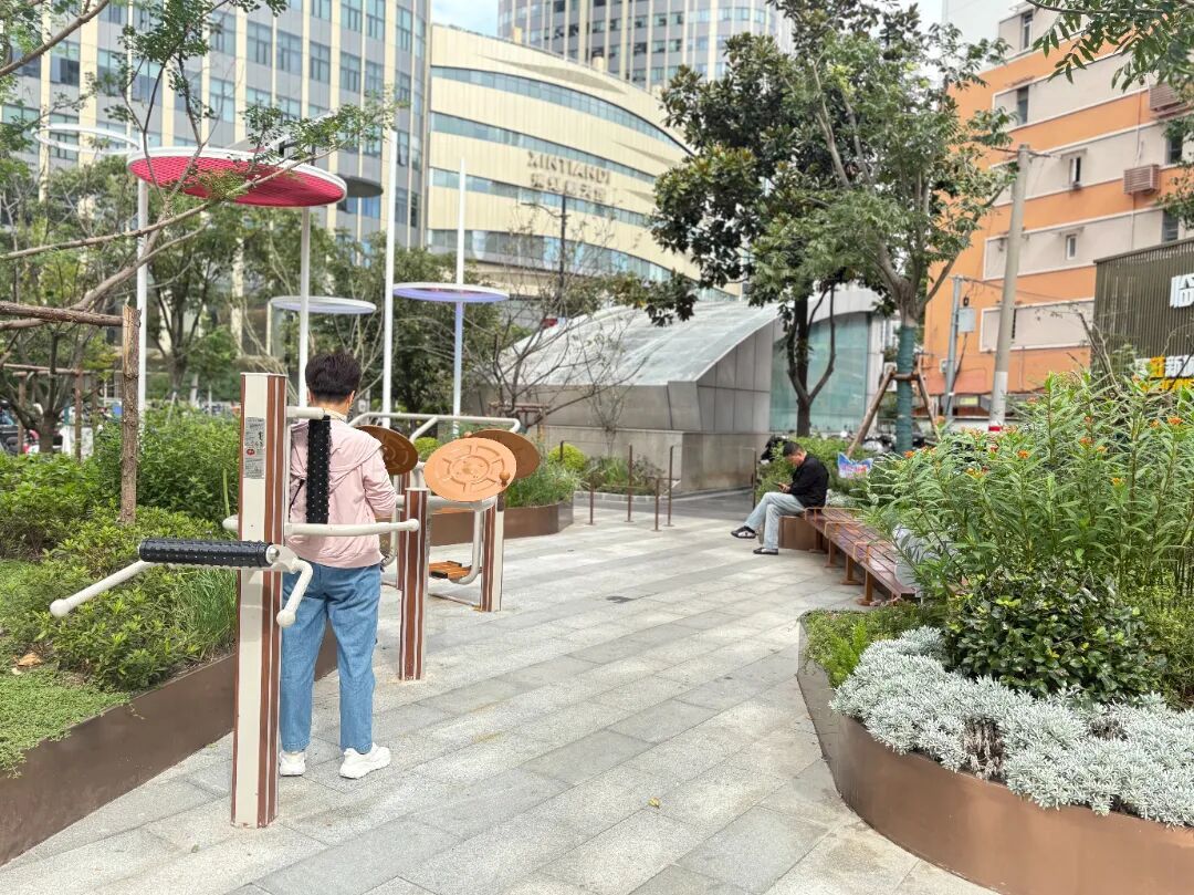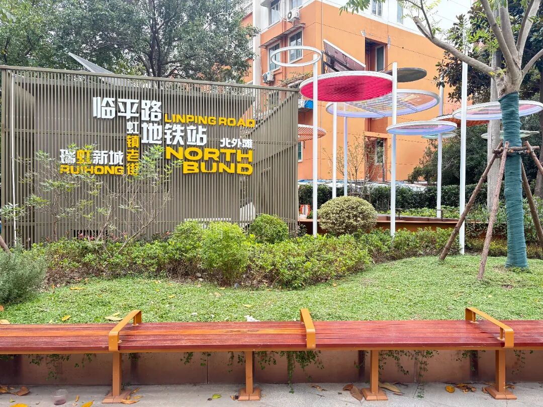 在地铁4号线临平路站1号口旁 一片崭新的“康养花园” 悄然亮相 一起去看看吧~ 近日,瑞虹社区周边美丽街区改造升级项目完成,改造范围涉及虹镇老街、天虹路、香烟桥路等十余条道路。 作为本次改造的核心亮点,天虹路虹镇老街交汇处,原本封闭的绿化带摇身一变,成为一处“康养花园”。改造以“适老康养、绿色低碳”为主题,通过重新梳理空间布局,打造出兼具休憩、健身、社交功能的公共空间。 花园内设置了充足的坐凳与健身设施,还融入了太阳能光伏发电景观灯、环保材质防腐木平台等环保装置,既满足了老年居民休息娱乐、邻里交流的需求,又践行了低碳节能理念,让公共空间既实用又具科技感。 花园紧挨地铁4号线临平路站1号口,针对地铁口非机动车停放杂乱问题,改造中专门将非机动车停车区集中规划至地铁站后侧,同时扩大沿街绿化带,使街道立面更加干净整洁,出行环境更有序美观。 附近小区外围也经历了一场“微整形”。原本的绿化残缺的花池,经过补种绿植并融入休憩功能焕然一新。沿街店招统一翻新,沿街立面品质显著提升。 此外,项目还聚焦街区细节和居民实际需求,完成了围墙外立面翻新、绿化景观提升、绿化带护栏加装、部分路面平整以及休憩座椅增补等一系列精细化工程,让街区不仅颜值在线,更充满生活暖意和活力。