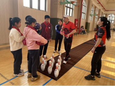 遇到的挑战不只在课程内容、运动空间方面,在课时量增加的情况下,体育老师的人数和精力有限,如何合理安排“快乐体育活动日”的师资也遇到了实际困难。据沈洪介绍,除了现有的体育教师、自身有体育特长的学科教师外,学校还发掘了优质家长资源作为有益补充。例如,学校的保龄球项目的开展就是源于高二年级学生李易如入选保龄球国家队的经历。她的父母都是保龄球教练,从小受家庭影响热爱保龄球运动,三次入选保龄球国青队,代表国家出战多哈。在李易如的影响下,学校开设了保龄球课程,通过大手牵小手的形式,组建了跨学段的保龄球队,李易如的父亲自愿为学校学生们义务授课,在家校社的合力下,学校形成了保龄球运动的良好氛围,这也成为了杨浦区级“一条龙”后备人才培养项目。