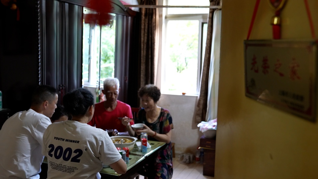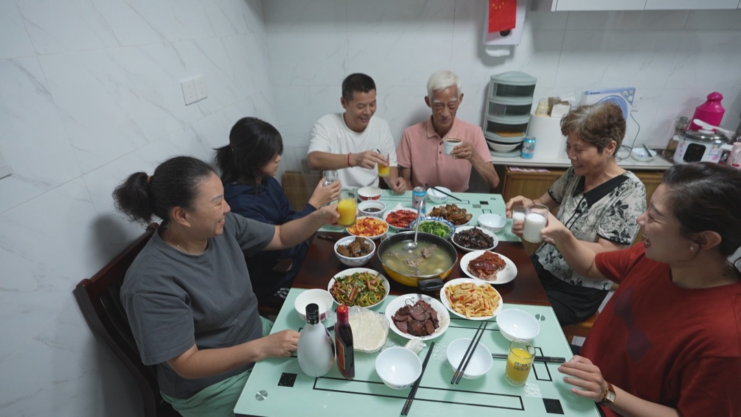 新家里多出一个客厅,吴阿姨在改造后更宽敞的“客堂间”,吃上了回搬之后的第一顿全家福团圆饭。
