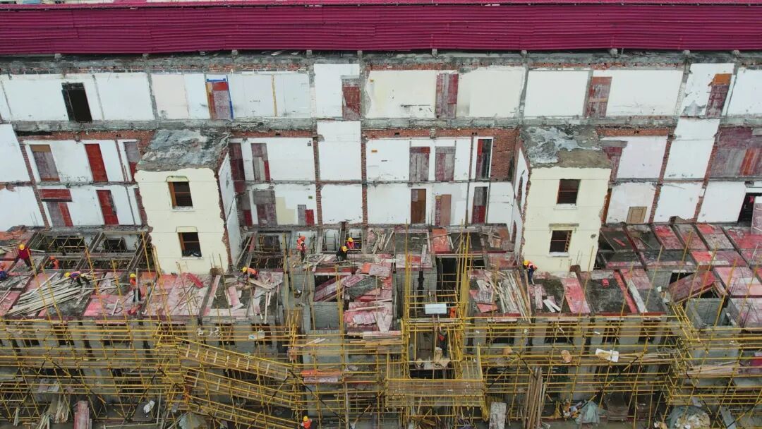 改建的楼栋,由上至下拆除,向北拓宽扩建,内部重新布局以新增厨卫空间。工程不仅要克服新老结构衔接的技术难点,还需应对每栋楼中成套与非成套住房交错分布的现状,实现“一户一方案”的精准设计。