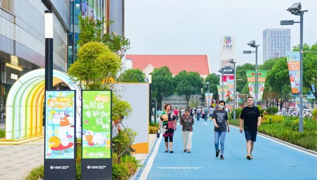 而在嘉定大融城,“盒子+公园街区”的模式打破了传统商业综合体的封闭感。开阔的草坪、宠物乐园、儿童游乐区与特色店铺无缝衔接。“以前就是逛商场,现在更像是在逛一个有趣的公园,可以坐下来听听音乐,孩子能在旁边安全玩耍,时不时还能参与一些有趣的活动,体验丰富多了。”带着家人前来休闲的市民张女士说。这种空间场景的重塑,不仅使街区出租率稳定在98%,更让商业体真正融入了市民日常生活。