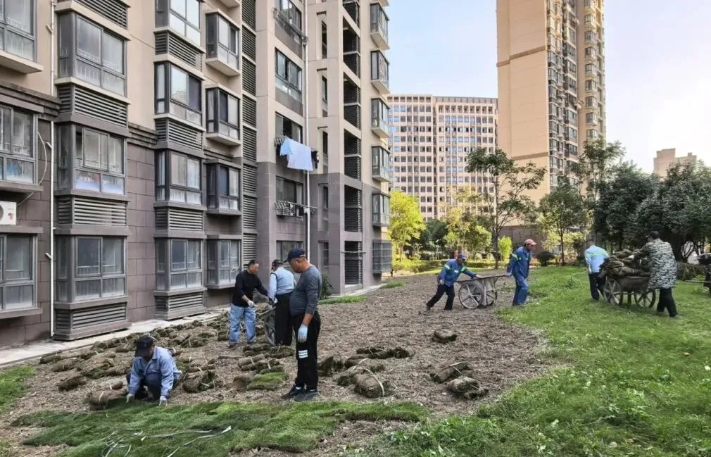 施工阶段,专业养护团队进场作业,对20余处绿篱进行精细化修剪,清运杂草、枯枝落叶5车;针对裸露土地,补植草皮300余平方米。同时,物业安排三保人员定期浇水、施肥、防治病虫害,持续巡查养护效果。如今走进小区,整齐的绿篱环绕着平整的草坪,绿意盎然的环境成为居民散步休憩的首选地,业主群里满是点赞:“物业把小区打理得干净又舒心,住得太惬意了!”