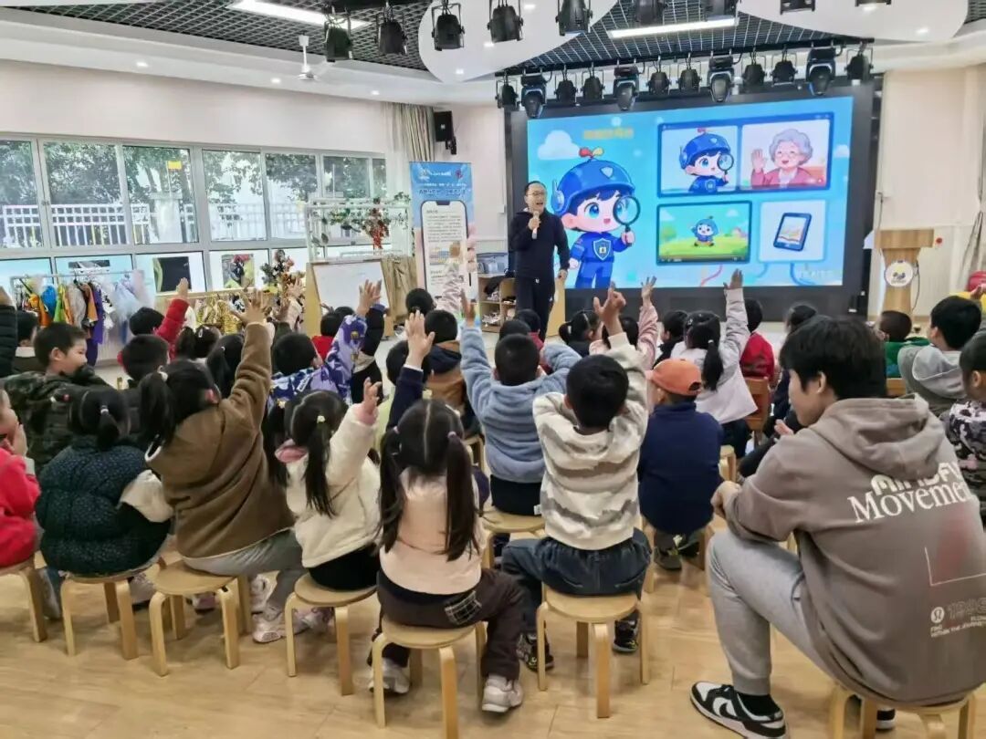 “陌生人发来的链接能随便点吗?”“爸爸妈妈的手机密码能告诉别人吗?”鲍老师的互动提问点燃思考热情,通俗的语言让孩子们轻松掌握“不随意透露家庭信息”“不点击陌生链接”“不与陌生网友见面”等核心安全知识,帮助孩子们巩固记忆。