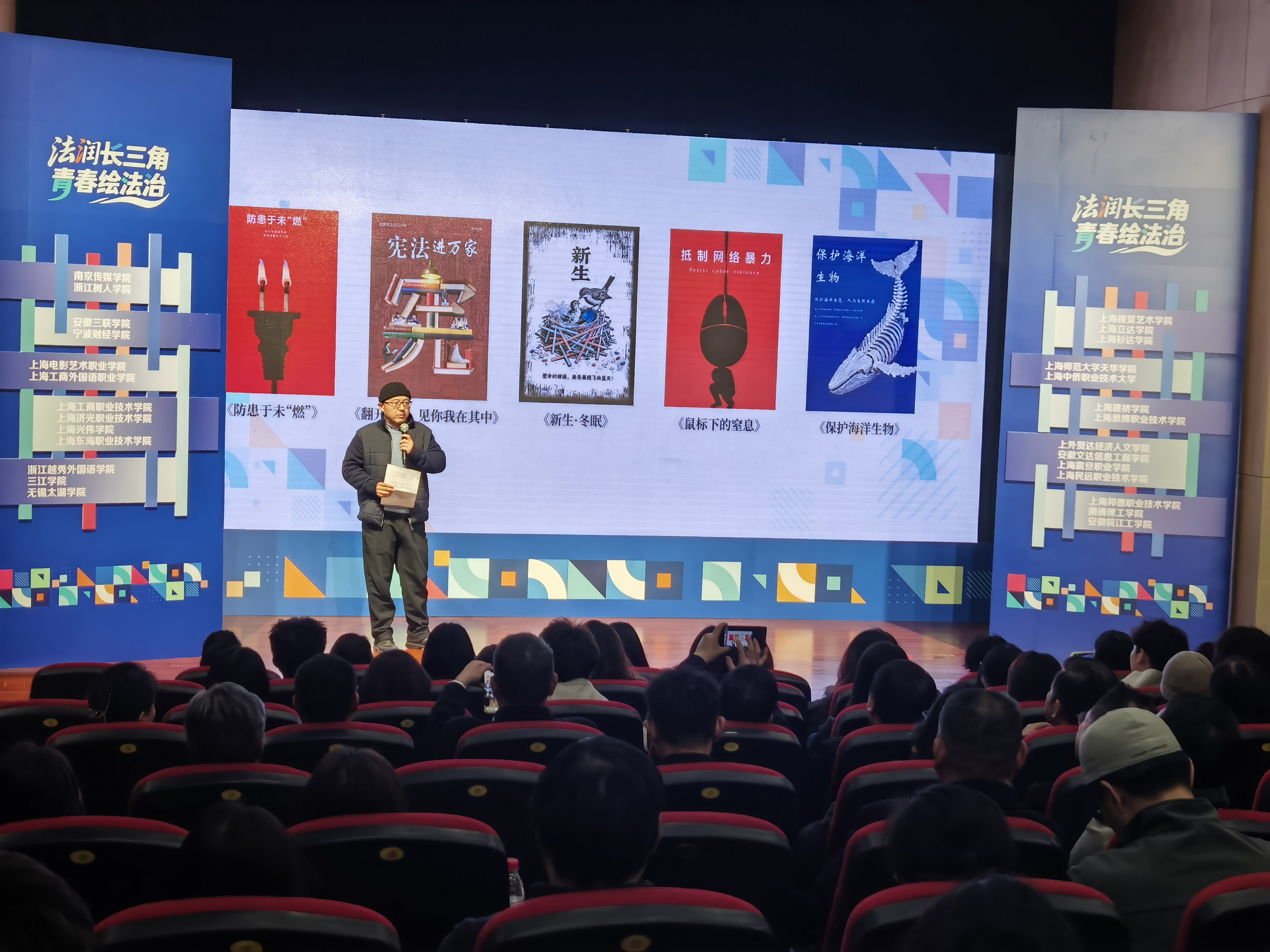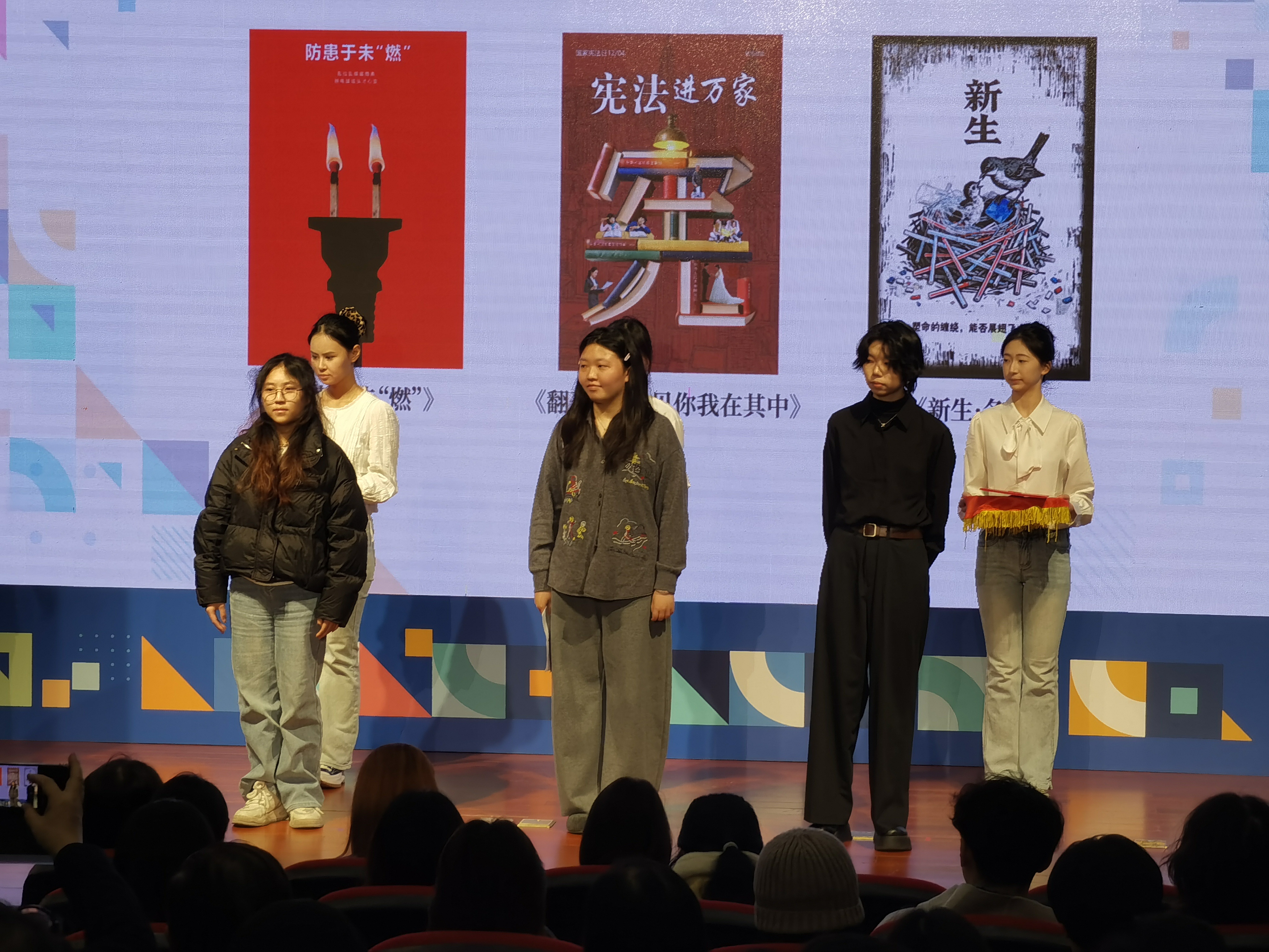 12月3日,2025年长三角民办高校大学生法治素养公益广告邀请赛在上海视觉艺术学院落幕,海报作品《防范于未“燃”》《翻开宪法,见你我在其中》《新生·冬眠》摘得本届大赛的金奖,作者分别来自上海视觉艺术学院的奚秋瑜、南京传媒学院的郑熙茗、上海工商外国语职业学院的吴涵。当天,来自27所院校的获奖学生和指导老师代表来到现场,见证了获奖作品的产生。