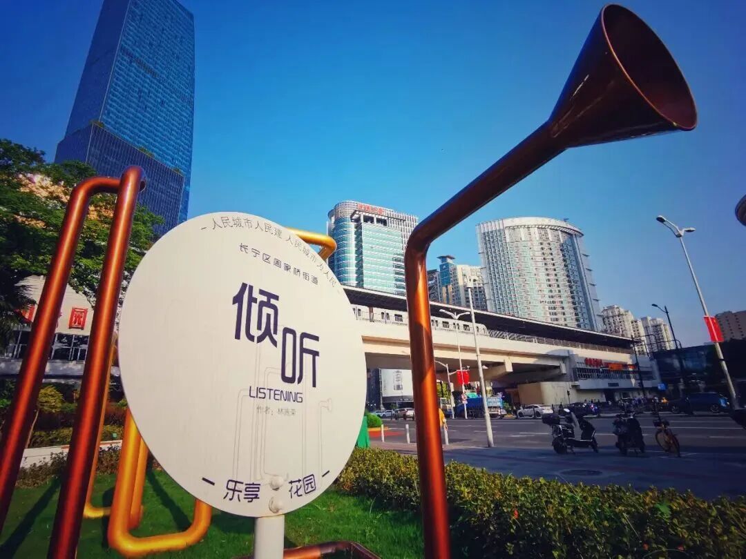 如今,从中山公园地铁站4号口或是长宁路步行而来,转角即可遇见这片令人惊喜的城市绿地。名为“倾听”的艺术雕塑立于盎然草坪上,跳跃的音符造型与充满童趣的传声筒装置增添艺术气息,不论你是居民还是游人,均可在这城市一隅享受到忙碌生活中的片刻宁静与温馨。这块曾经三不管的“边角地”,不仅是小区的“入户花园”,更成为了服务周边商圈白领、游客的“城市会客厅”。