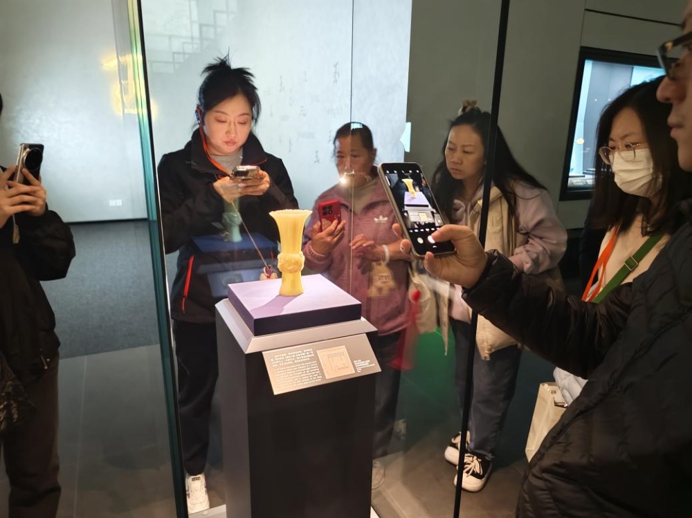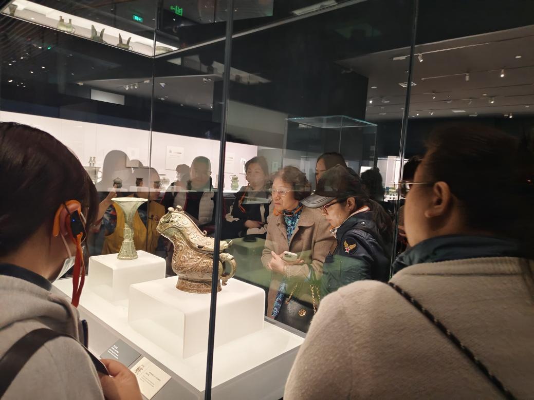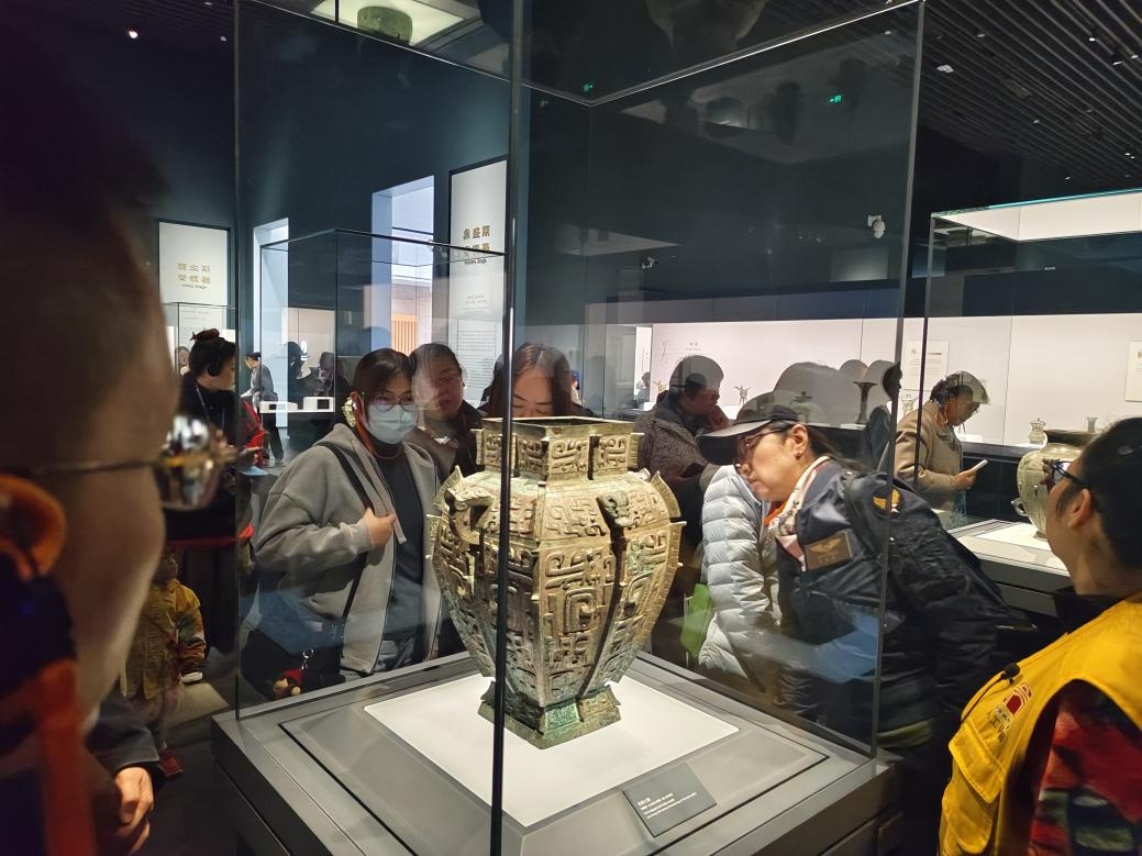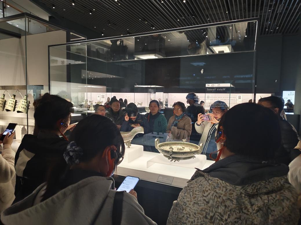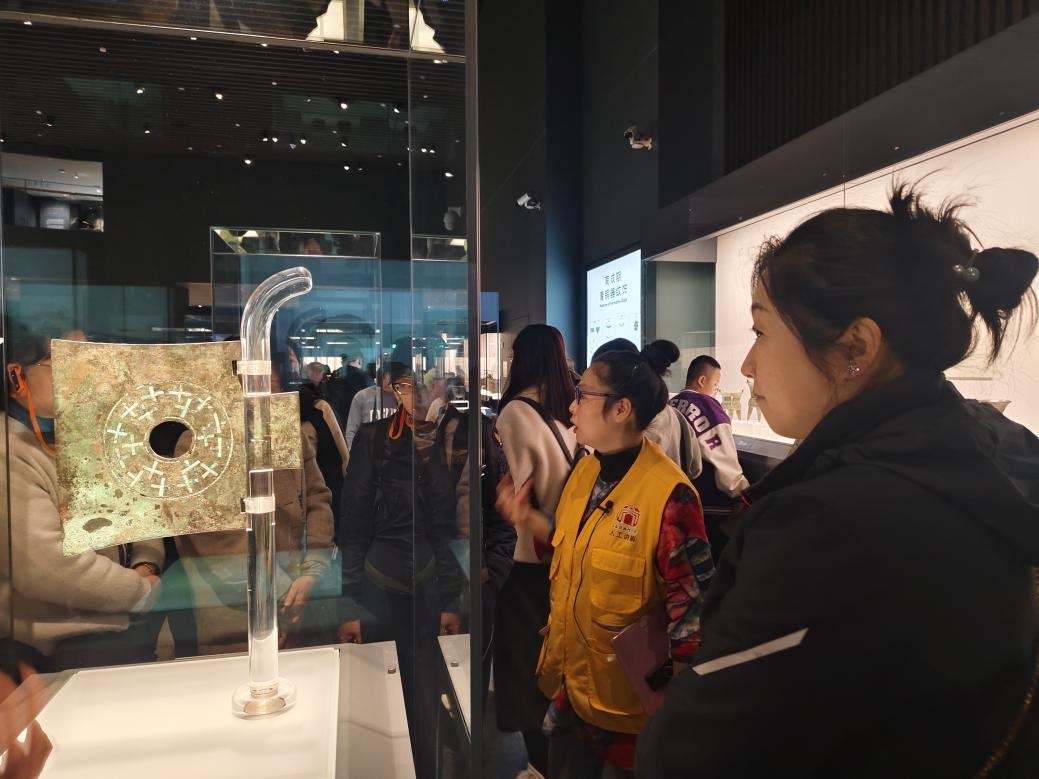踏入青铜馆,仿佛穿越回商周时期的礼乐盛世。大克鼎作为镇馆之宝,器型厚重典雅,其内壁的290字铭文清晰可辨,详细记载了西周的礼乐制度与贵族生活,字字句句皆是研究西周历史的珍贵史料;子仲姜盘则以精巧的“灵动机关”惊艳众人,盘内的龙、鱼等纹饰部件可自由转动,尽显春秋时期工匠登峰造极的技艺;晋侯苏钟奏响的千年音律,古朴悠扬,仿佛将古人的礼乐情怀娓娓道来,让现场参与者直观感受到商周青铜文明的辉煌高度。