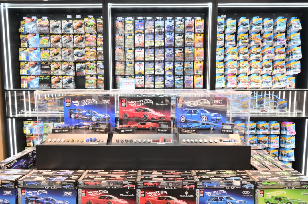 店内打造超级合金小车矩阵——入门级与收藏级小车的首选目的地。这里汇聚风火轮、火柴盒、MINI GT、比美高、美驰图、美捷轮、JADA等国内外主流品牌,覆盖了欧美超跑、JDM、F1、动画电影IP、原创车款及玩具反斗城联名款等系列,全区域汇集超过1000个单品,从经典车款到限量联名,全面满足不同玩家的收藏品味与个性化需求。