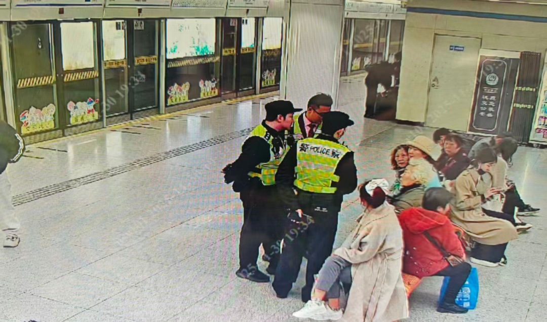 当日下午,在人民广场站繁忙的8号线站台,有热心乘客遇到一位求助的老人,但是在与老人沟通中发现老人一直答非所问,感觉不对劲的乘客立即向车站工作人员求助。车站值班站长邓胤、徐俊与驻站轨道公安民警迅速响应,第一时间赶到老人身边。他们俯下身,耐心安抚老人情绪,但是老人既说不出自己的名字,也无法提供有效证件,更记不得家在哪里。经过反复温和细致地沟通,老人才会一起回忆起零星的几个词,“中远”“湾”。经过确认,老人家应该在“中远两湾城”附近,并表示“到了地铁出口就认识了”。