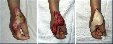 在手背、虎口或面部这些关键功能区域,一次深度烧伤带来的后果,往往远超皮肤损伤本身。它可能意味着关节挛缩、手指僵硬,甚至终身丧失抓握或表情能力。45岁的王女士就曾深陷这样的困境——因昏迷导致左手背严重热力灼伤,创面达三度,部分肌腱外露,拇指与食指之间的虎口几乎闭合。传统治疗要么选择刃厚皮移植,但术后极易瘢痕挛缩;要么采用人工真皮支架联合植皮,却需多次手术、费用高昂、周期漫长。