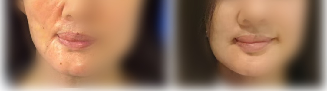 更令人振奋的是,不止于外伤的修复,该技术正在向更多场景延伸。烧伤整形与创面修复科目前已开展“PRP预构联合自体脂肪移植”,用于改善半侧颜面萎缩、凹陷性瘢痕等难治性畸形。一位因半侧颜面萎缩症导致面部严重凹陷的年轻女性,在接受该联合治疗后,轮廓明显饱满,自信回归。这标志着瑞金的创面修复理念,正从“保结构、保功能”迈向“促再生、塑外形”的更高维度。